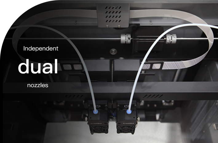 独立型デュアルエクストルーダー(IDEX)を採用することで、F430 NXは圧倒的な造形スピードを獲得。さらに、2つのパーツを同時にプリントできる「コピーモード」や、左右対称のパーツを一度に造形する「ミラーモード」に対応し、生産性を飛躍的に向上させます。短時間で高品質な複数のパーツの造形が必要な企業にとって、まさに理想のプリンターです。