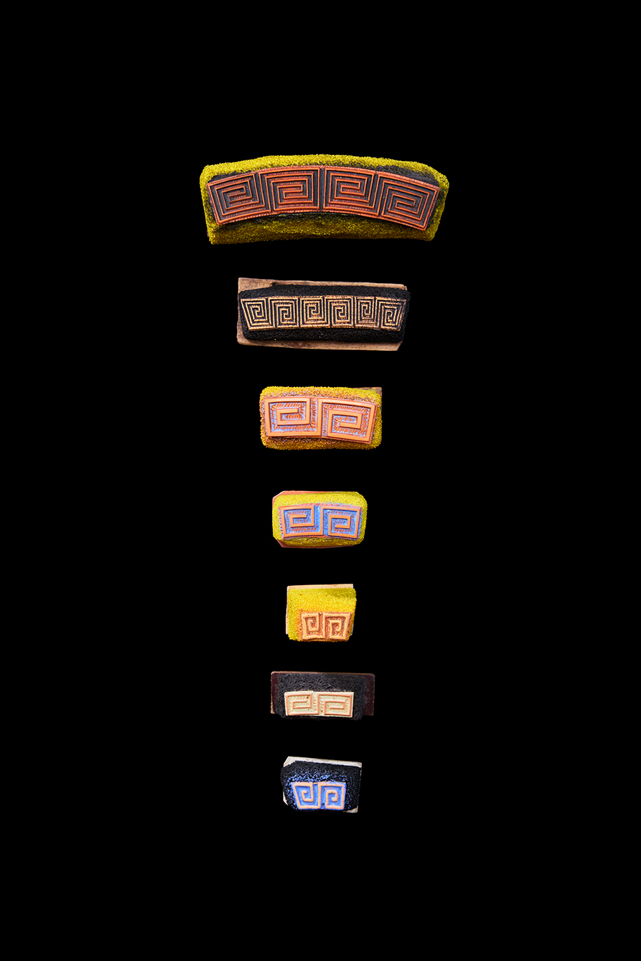 ラーメン丼に施す雷紋のゴム印 (撮影:西部裕介)