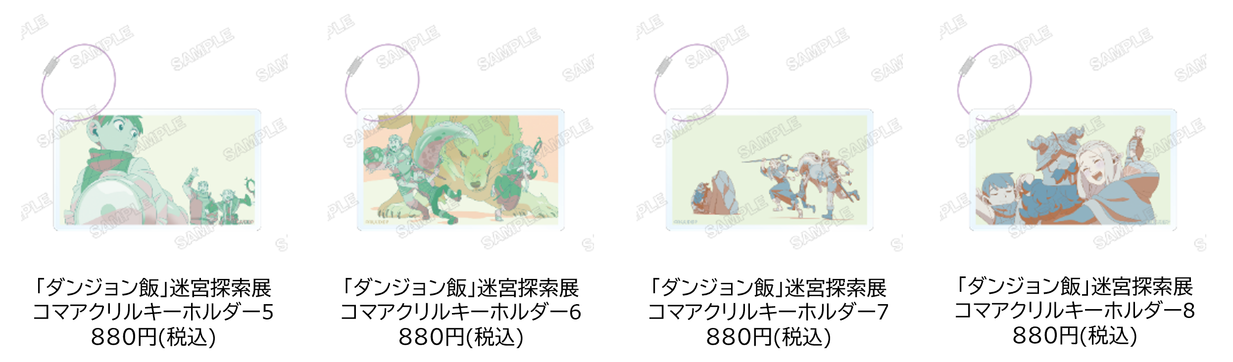 物販購入特典として、1会計で3,300円(税込)お買い上げいただくごとに九井諒子展&「ダンジョン飯」迷宮探索展 オリジナルクリアカード(全8種)をランダムでおひとつプレゼント!