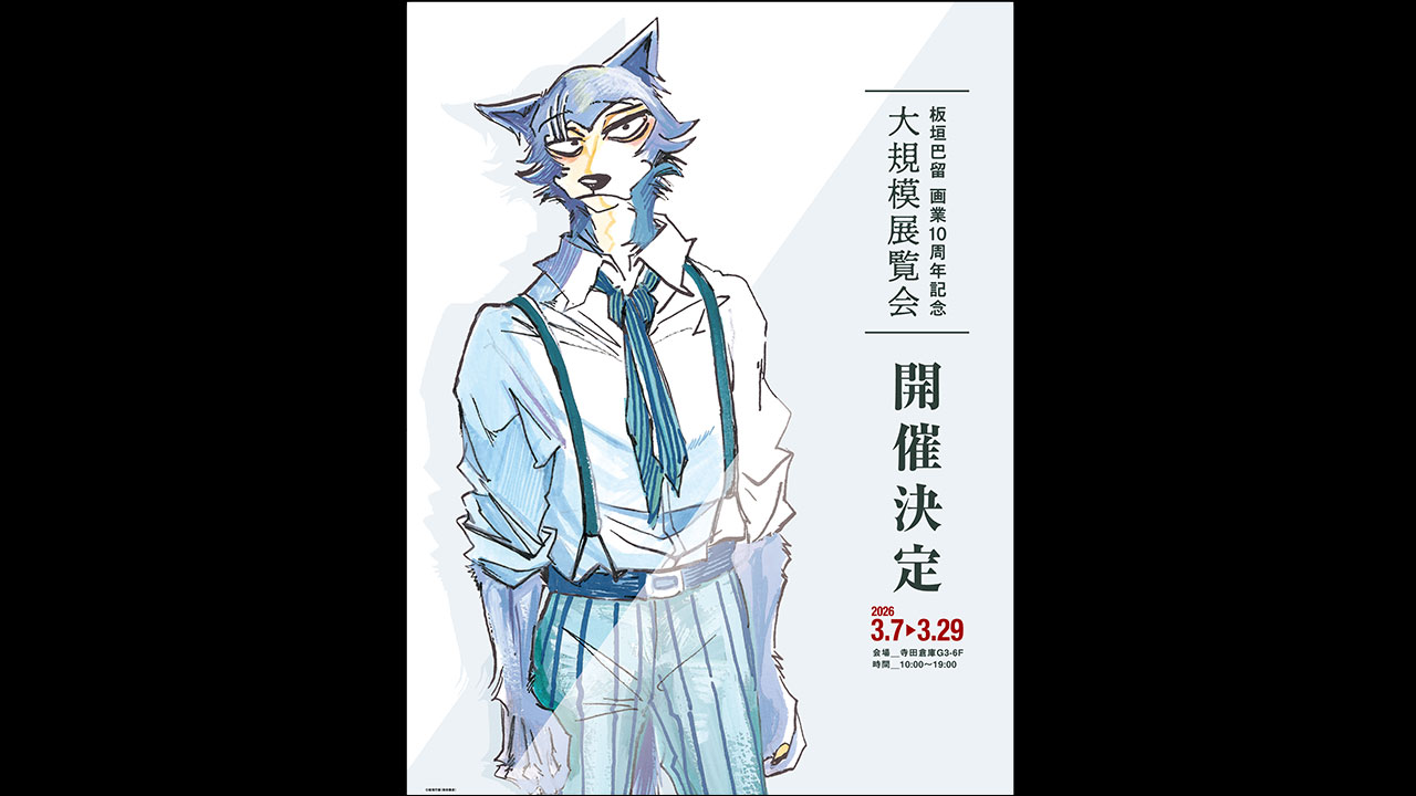 「BEASTARS」、「SANDA」、「タイカの理性」などを手掛ける大人気漫画家・板垣巴留先生の画業10周年を記念して、2026年3月、原画展が開催決定!本展では「BEASTARS」をはじめ各作品より選出された多数の貴重な原画展示など画業10年間の軌跡を堪能できるような内容を予定。展覧会ショップコーナーではイベントオリジナルグッズも販売予定です。
