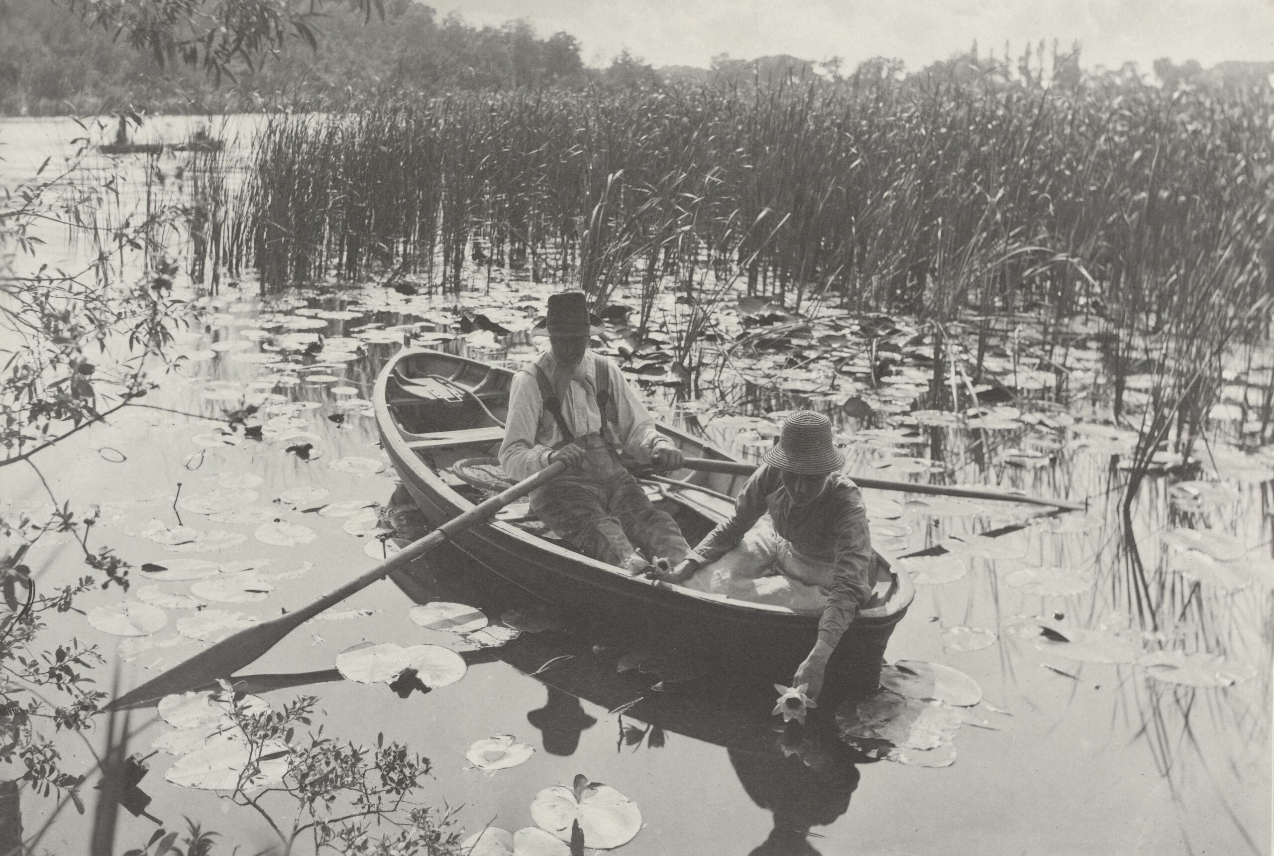 【日本初公開】ピーター・ヘンリー・エマーソン《睡蓮の採取》1886年、プラチナ・プリント、ガラス乾板より、オルセー美術館蔵 Photo © GrandPalaisRmn (musée d’Orsay) / Hervé Lewandowski / distributed by AMF