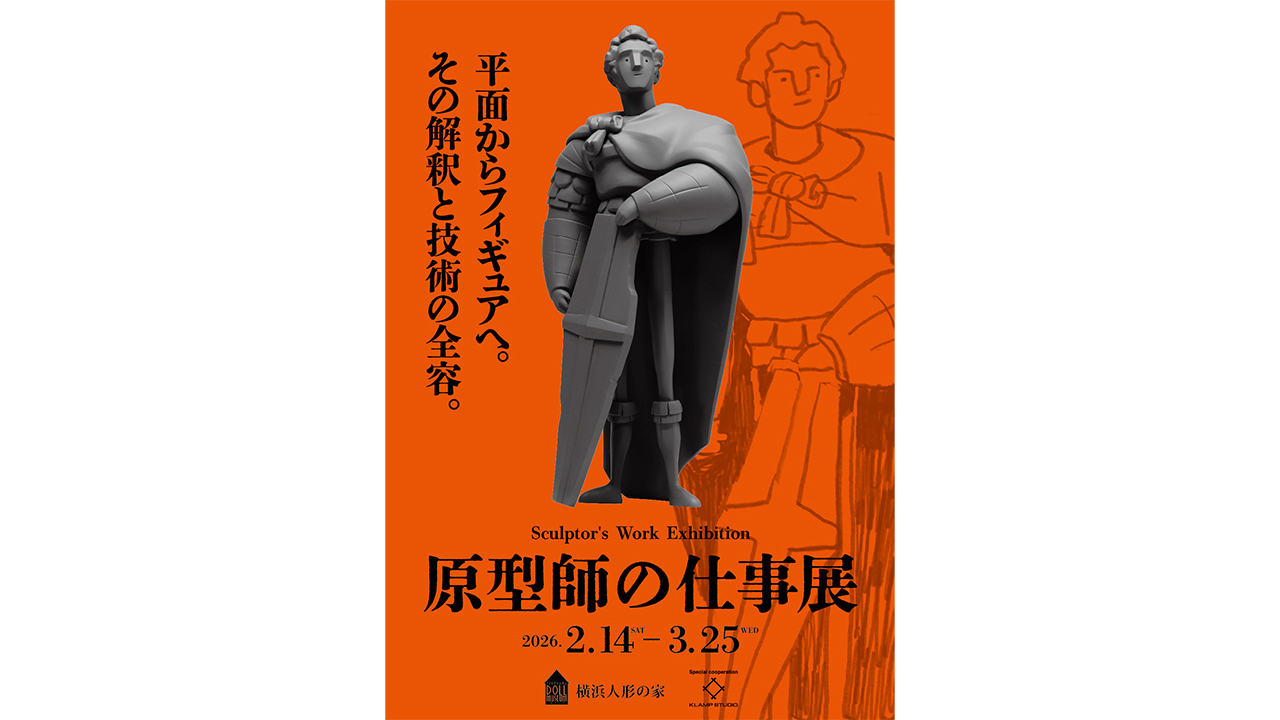 2026年3月7日(土)より横浜人形の家にて「原型師の仕事展」が開催されます。特別協力はバンダイナムコグループの株式会社アートプレスト内にある造形室「KLAMP STUDIO」。本展では精巧な原型ができるまでの工程を解説するほか、スタジオ所属の原型師たちが手がけたオリジナルフィギュア展示やトークイベントなどが行われます。