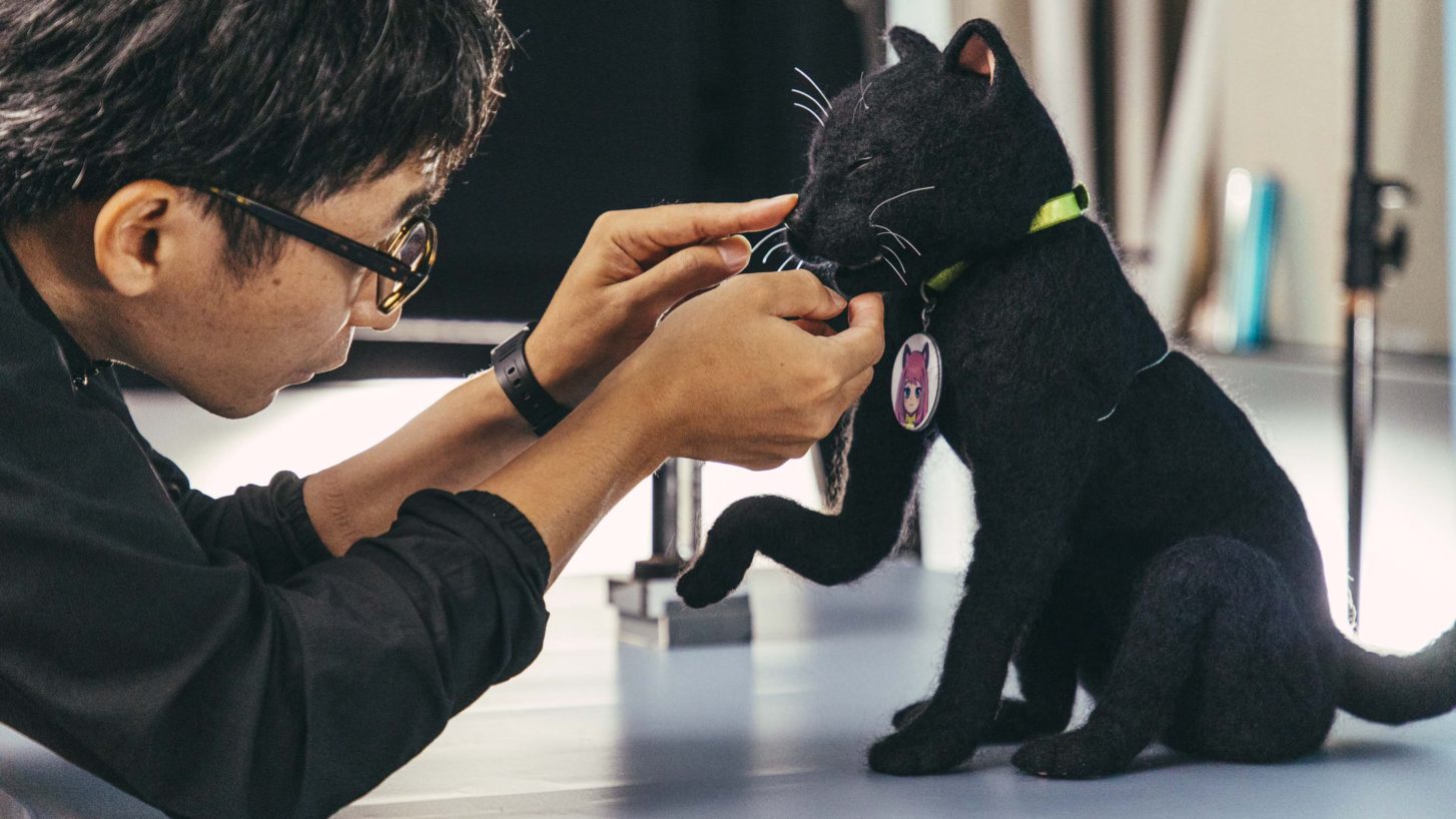 黒猫の人形造型はスタジオプラセボの下井孝司さん、骨格(アーマチュア)はアーマチュア作家の川村徹雄さんが担当。毛並みはフェルト、骨格は肩や足の付け根などはボールジョイントを使用し、しなやかな動きが求められる手足や尻尾には針金(ヒューズ線)を使用した。