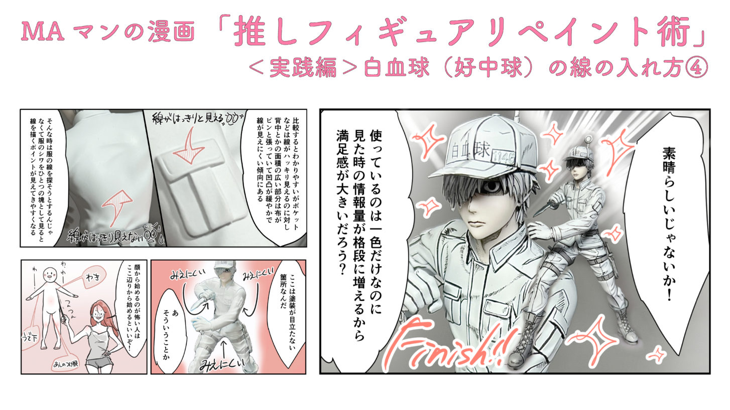 MAマンの漫画「推しフィギュアリペイント術」 <実践編>『はたらく細胞』白血球(好中球)の線の入れ方④