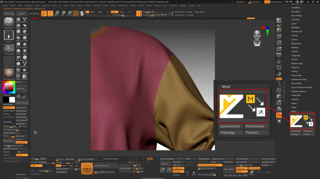 「大畠雅人のZBrushおすすめプラグイン紹介」Marvelous DesignerとZBrushを繋いでくれる!超時短プラグイン ⑤Zplugin MtoZ
