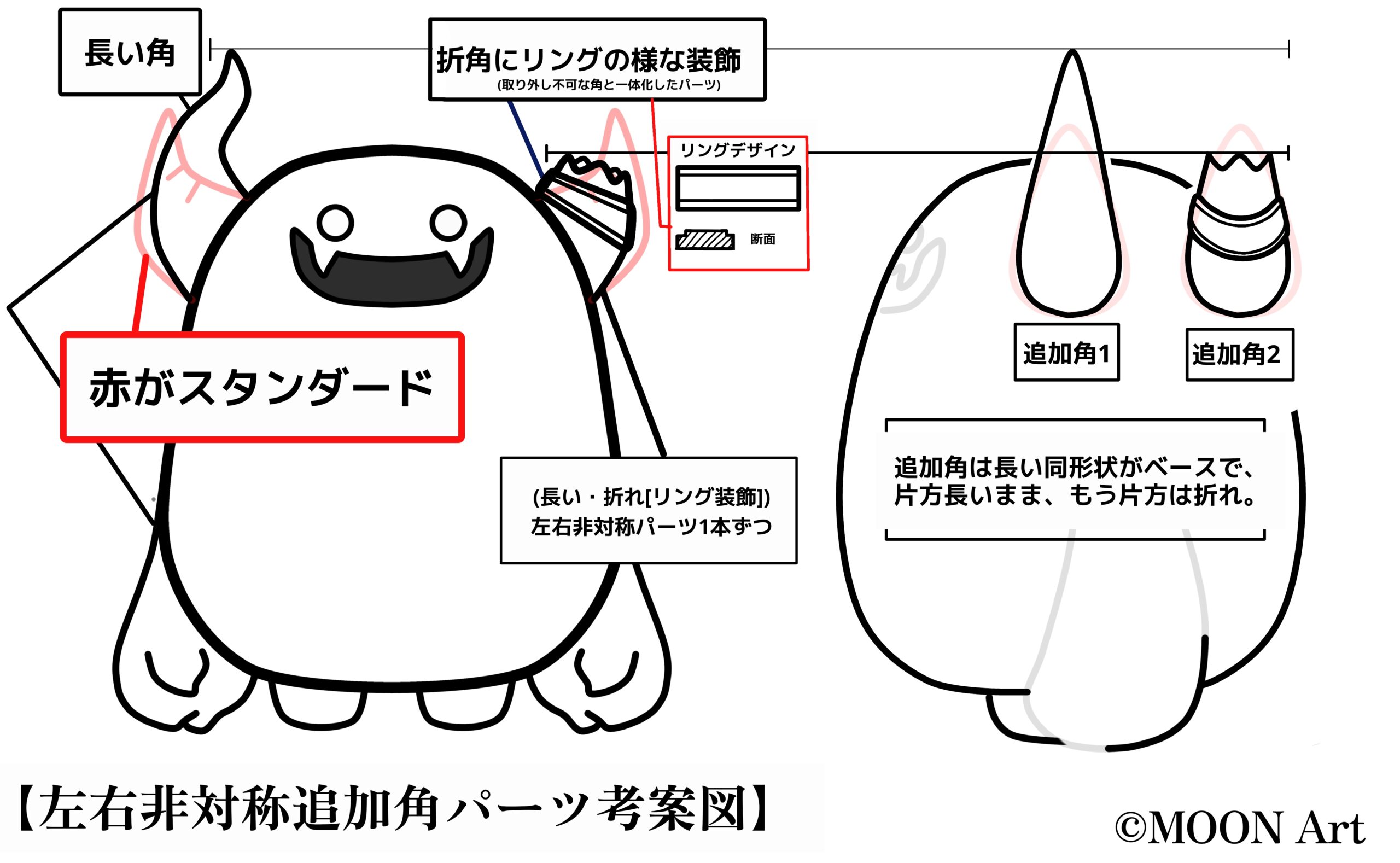 また、後述しますが「デモン」というキャラクターは造形物として展開する際に彩色バリエーションを増やすことが決まっていたため、さまざまなデザインパターンを取り入れやすい構成にすることも意識しました。