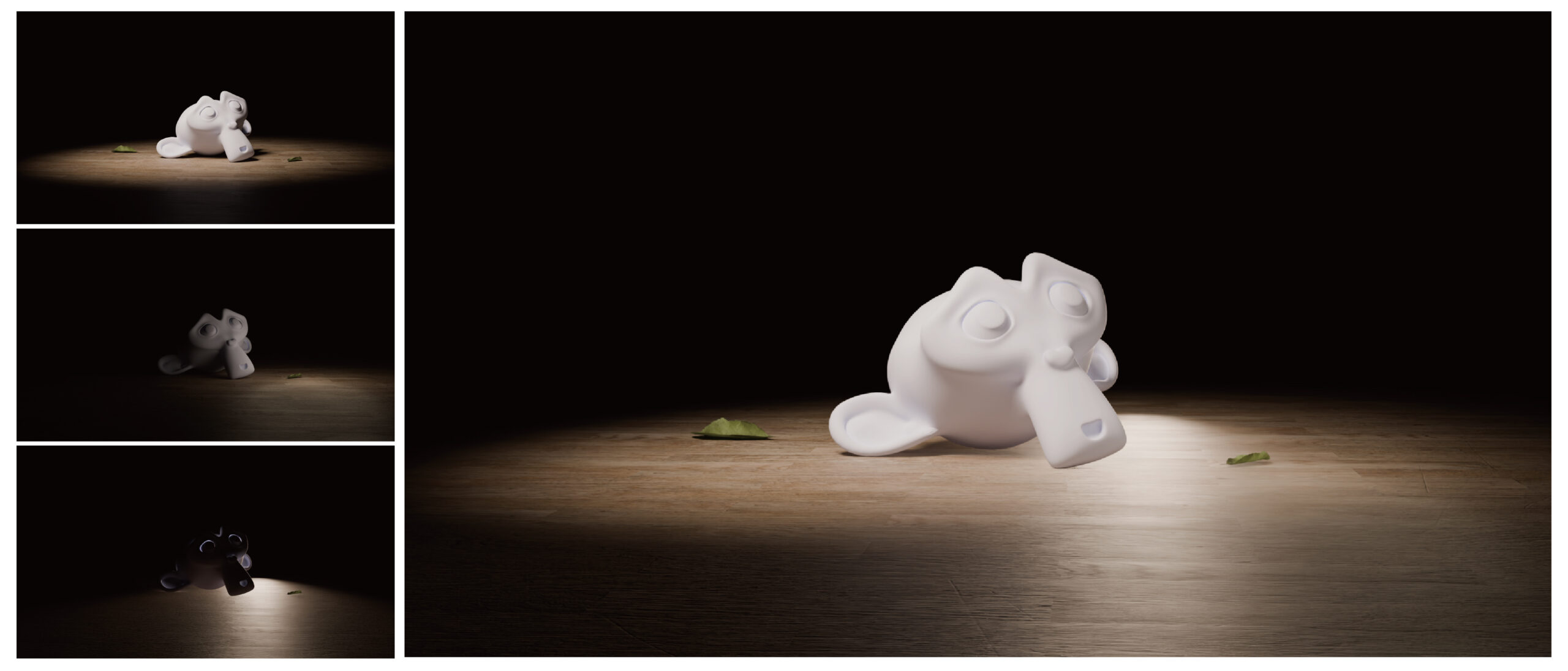 主に、フォーカスしたい被写体がある時に使います。見せたい形を丁寧に伝えたい対象がある時です。CGの場合だと、プロダクトやキャラクターモデル、あとはスタジオ風に撮影するときなどにも使います。