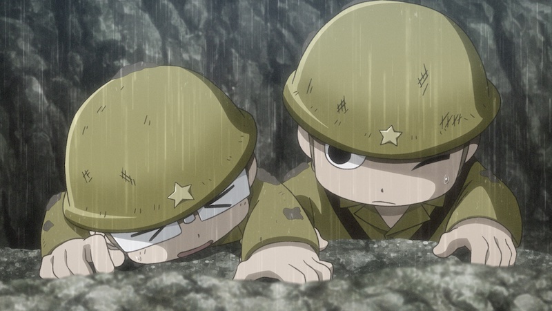 原作者・武田一義氏は「兵器が人体を破壊するさまをきちんと描いてほしい」と要望したという。兵士が戦死するシーンの作画は色彩の明度が下がり、時には傷跡自体が黒く着色されているが、それでも攻撃で顔の一部が損壊し、手足が吹っ飛ぶ様子は隠しようもない。それでいてグロテスクさを感じさせないのは、キャラがデフォルメされているからだけでなく、調整されたCGエフェクトやデジタル映像が生々しさを緩和してくれているためだろう。
