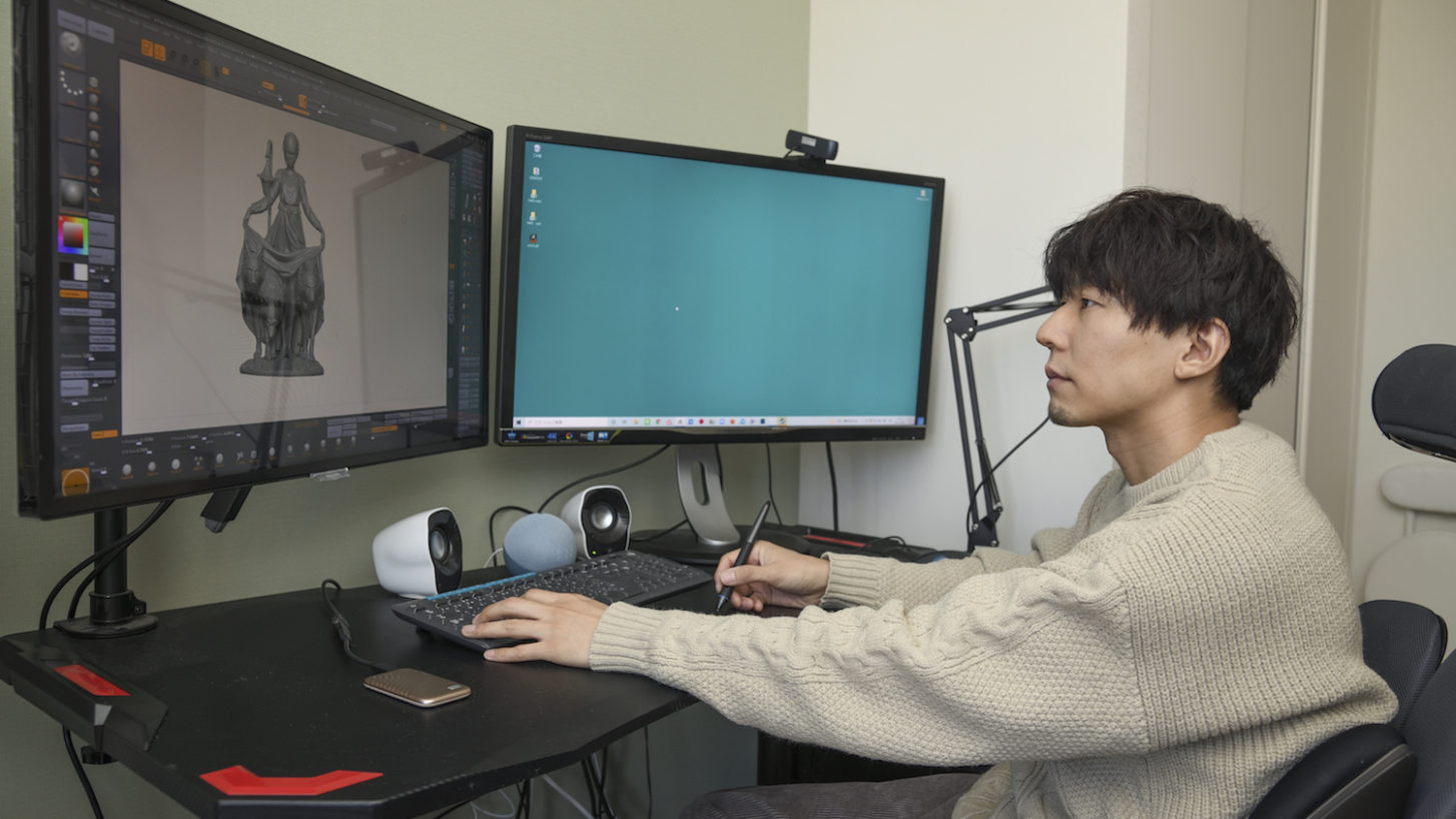僕は、デスクトップタイプのハードディスク(HDD)2台と、ポータブルタイプのHDDを1台、普段から使っていました。大きさや複雑さにもよりますが、1体の造形には数ヶ月かかります。なかでもオリジナル作品では制作期間の9割が構想で、この時間をとても大切にしています。自分の深いところにあるアイデアを何パターンも出した後、いらないものを引いていき、芯だけになったらまたアイデアを足して、の繰り返し。そうやって何時間も苦しんで産み出したデザインを、PCのモニタ上で造形していくわけです。デジタル原型は3Dプリンタで出力するまでデータの中にしか形がないので、それが消えてしまうというのが一番恐ろしいこと。特にオリジナルフィギュアは、もともとのデザイン設定がないので、構想段階における試行錯誤の途中でもバックアップは重要です。