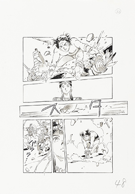 90年代に入る頃、漫画に専念するようになった安彦は、神話を再解釈して古代日本をダイナミックに描いた『ナムジ』(1989-91)を皮切りに、歴史漫画家として活躍を始めます。また近代史を舞台に『虹色のトロツキー』(1990-96)や『王道の狗』(1998-2000)など、歴史の渦に翻弄されながら懸命に生きる「小さき者」たちを主役とした作品群を生む一方、西洋史やキリスト教文化を主題とした『ジャンヌ』(1995-96)などの作品も手がけています。