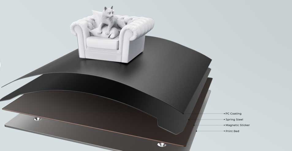 PCコーティング、ばね鋼シート、および磁気ステッカーの組み合わせであり、モデルをプラットフォームに貼り付けたり、より簡単に取り外したりすることが可能。