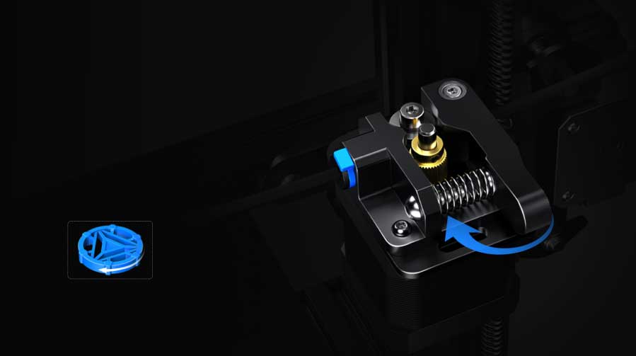より大きな押出力と耐久性を備えているため、ノズルの詰まりのリスクが軽減されます。フィラメントのスムーズな供給と引き抜きを容易にするために、回転ノブが追加。