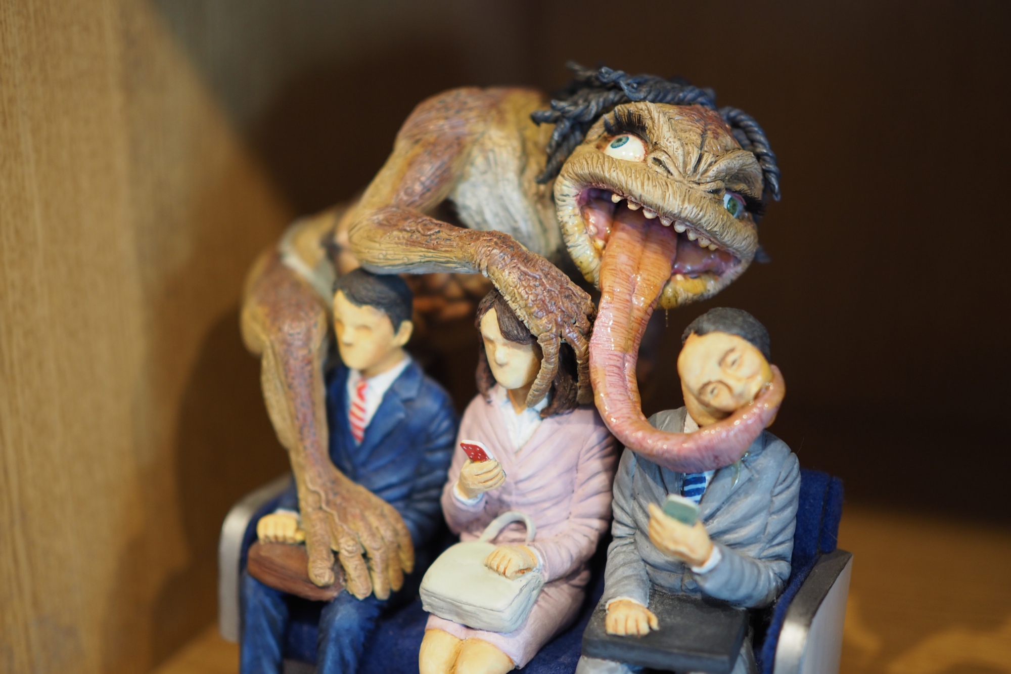 スマホばかりをみている現代人から表情をなくす妖怪「顔盗人」