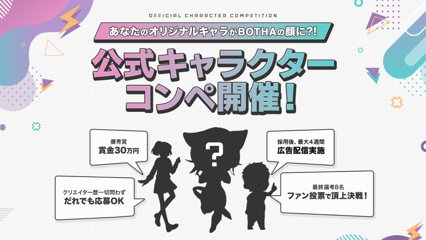 BOTHA(ボータ)ではクリエイターの皆様、ファンの皆様と「サービスを一緒に作り上げてく」というビジョンを掲げており、クリエイターの皆様が応募した作品から、ファンの皆様の投票で選定するという”参加型”のキャラクターコンペ形式でのイベント開催を決定いたしました。