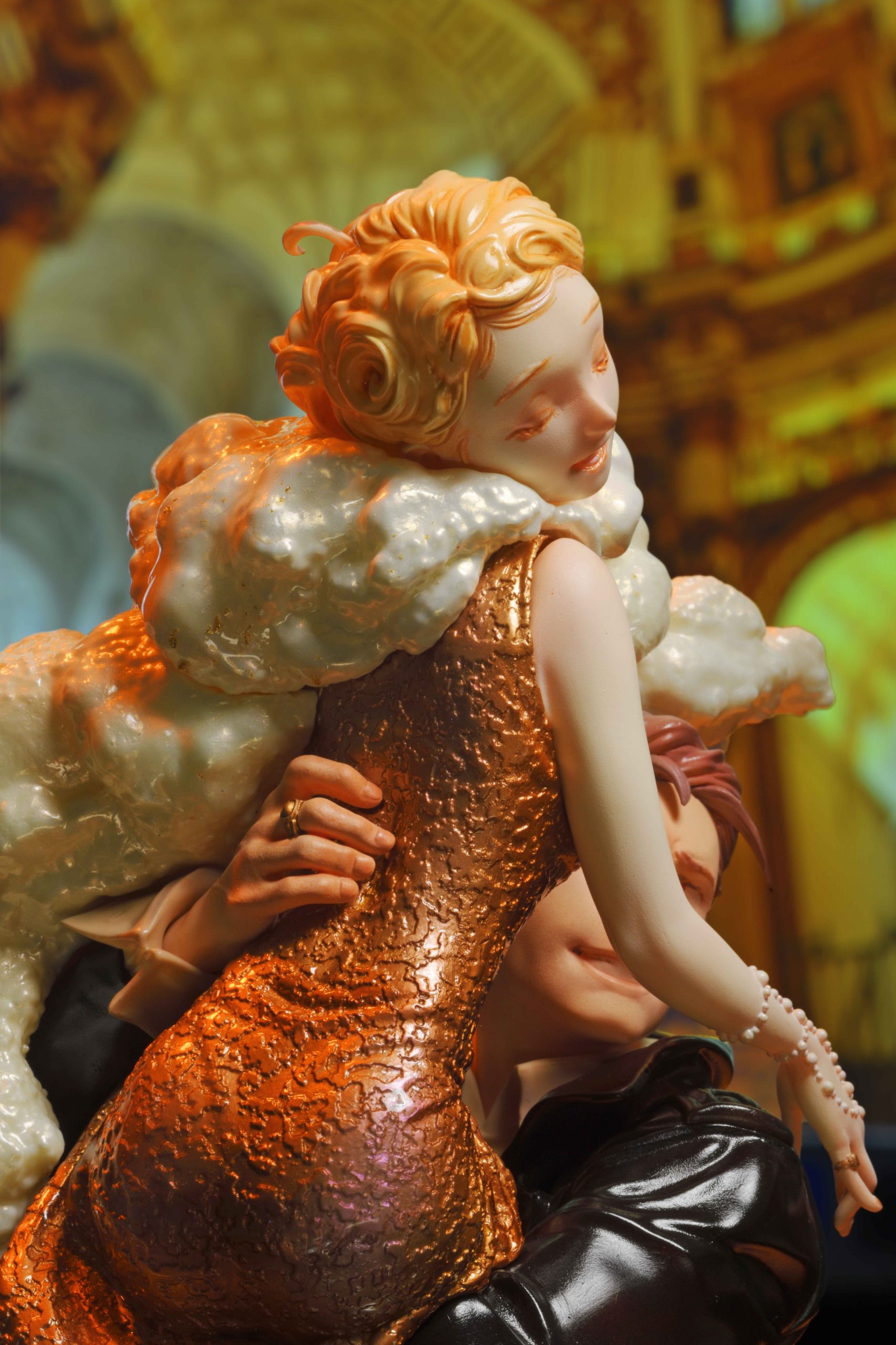 これを今回は意図的に壊したいというのは根底にありました。それくらい、彼女と彼の存在というものは唯一無二でした。このふたりだからこそ魅力的な形があるという感覚です。彼の目元が決めカットで見えないという構図がポイントでした(商業フィギュアで顔のパーツが意図的に隠れるというのはあまり