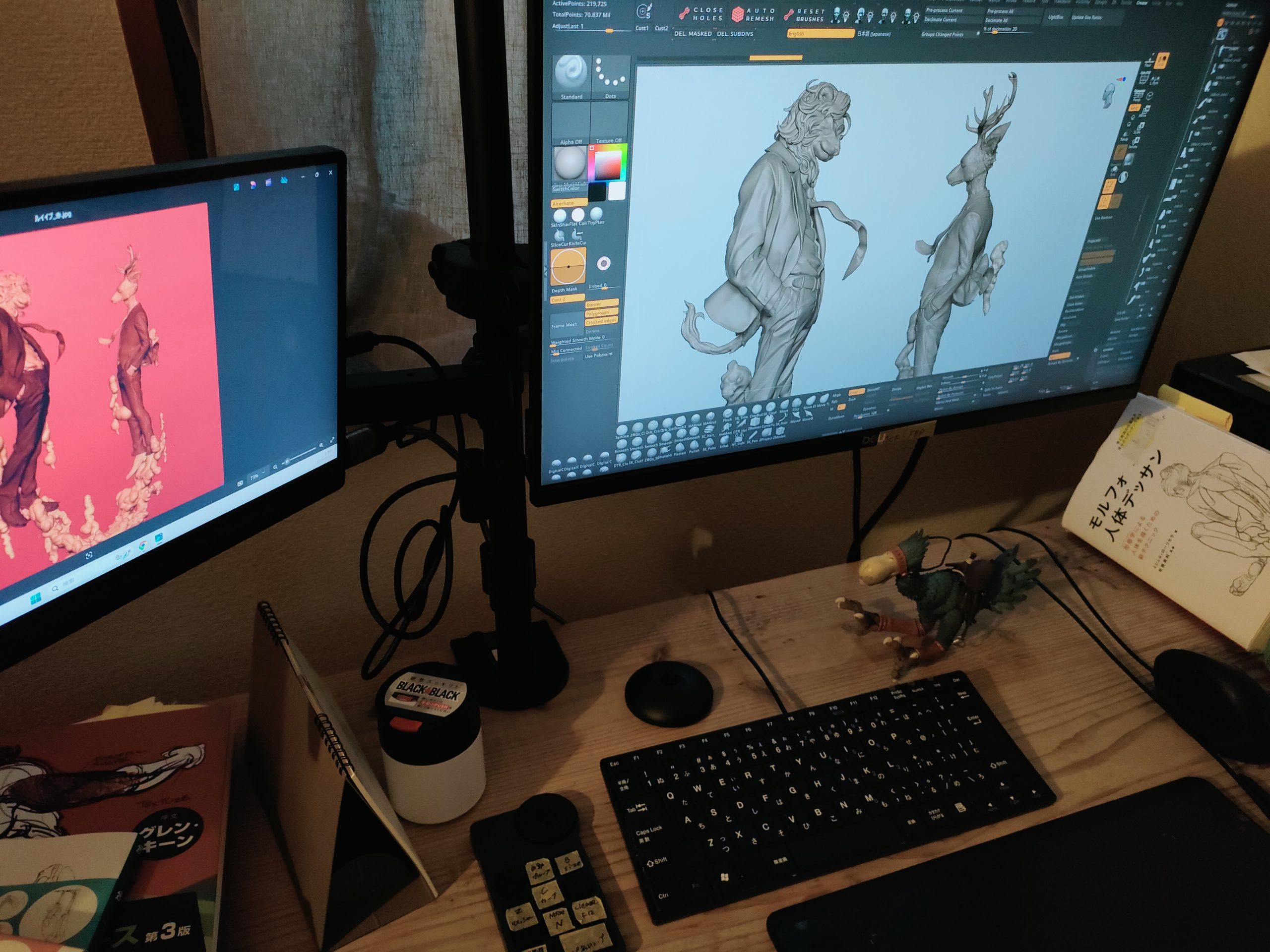 商業フィギュア原型製作を生業にしています。男性キャラクターを作る機会が多いです。企画(ポーズ案など)から携われることもありキャラクターに寄り添える時間が面白く感じます。