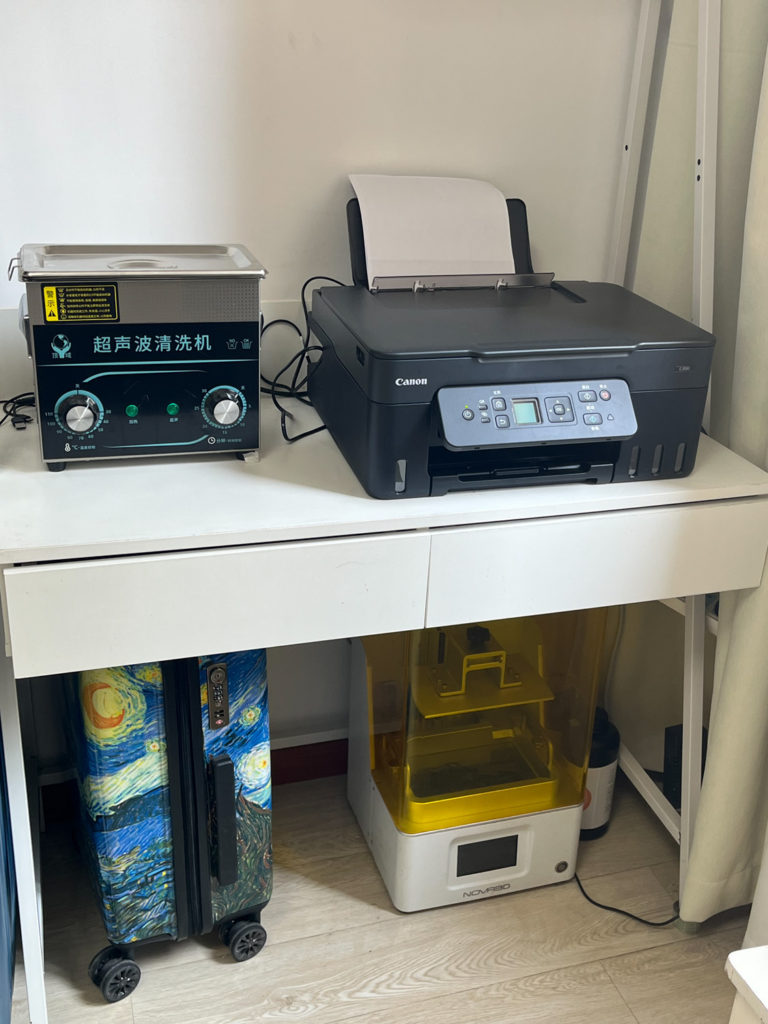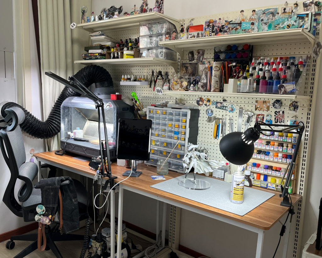 プリンターでの出力、手作業、そして塗装はすべてこの部屋で行っています。
