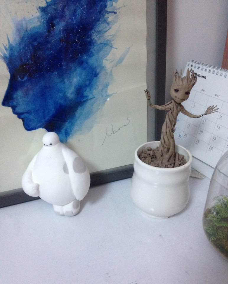 映画『ガーディアンズ・オブ・ギャラクシー』に登場する小グルートに惹かれ、陶土を用いた彫刻に挑戦いたしました。(2014年)