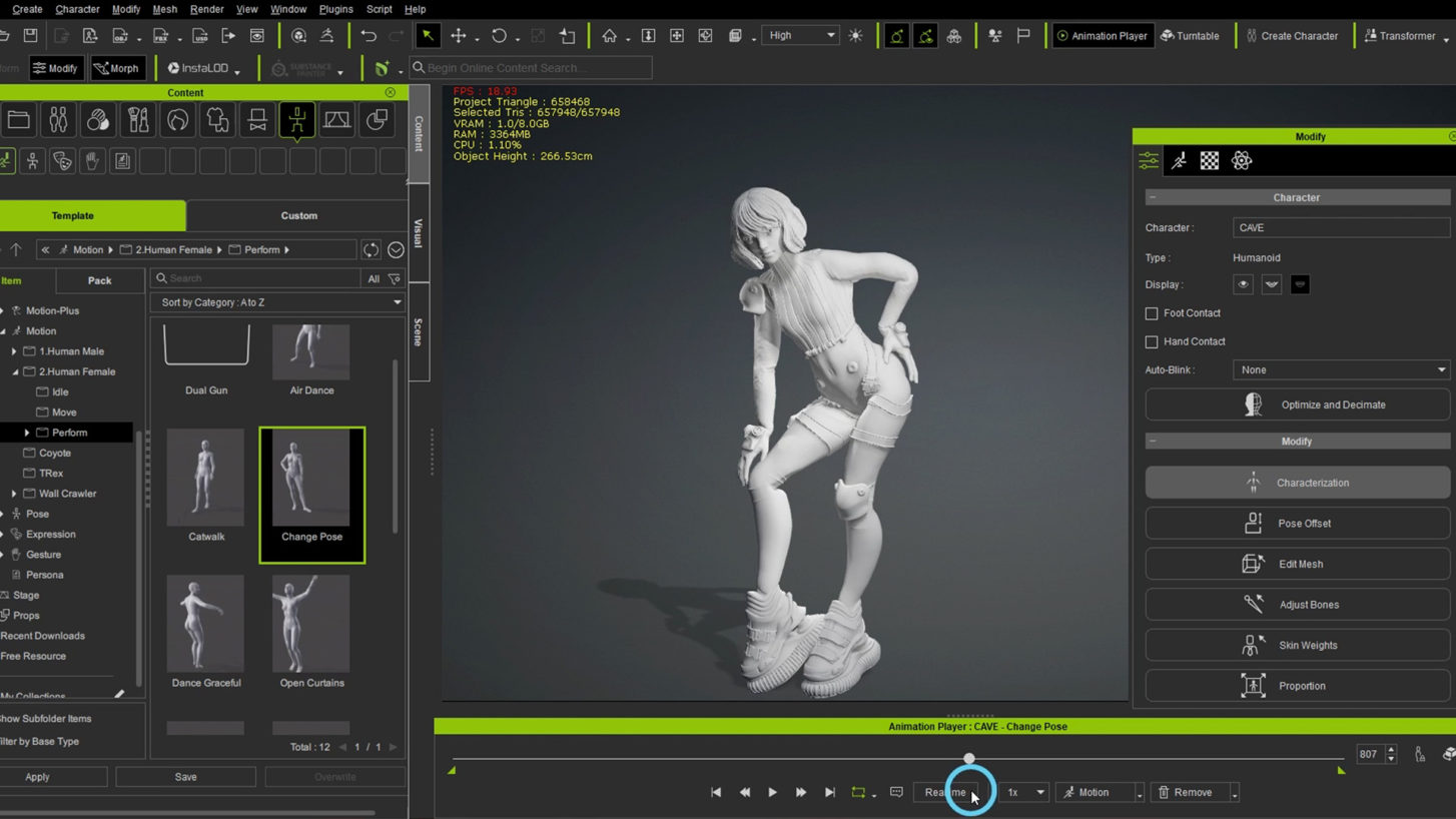 16.ポーズを修正したい場合は、ModifyからEdit Poseを選択すると手動で調整することができます。
