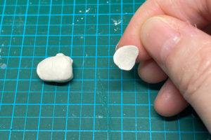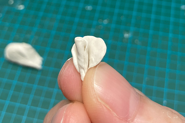 2.指でつぶします。いびつな形の方がそれっぽくなります。外側になる部分を薄めにすると良いです。