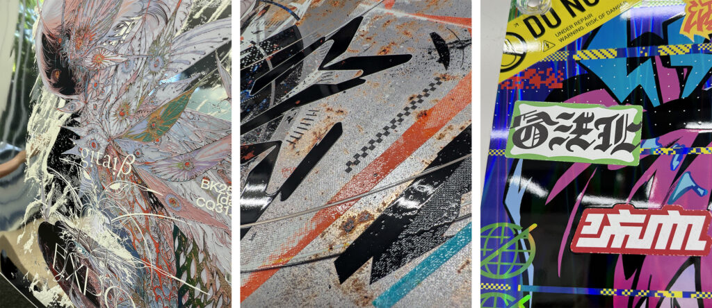本展で展示されるポスター作品は、印刷会社・ショウエイおよびフラットラボの協力のもと、紙や印刷手法にもこだわった仕上がりとなっています。イラストレーターやデザイナーが印刷仕様を前提に制作しているため、多様な印刷表現が施されたポスターそのものの完成度にもぜひご注目ください。