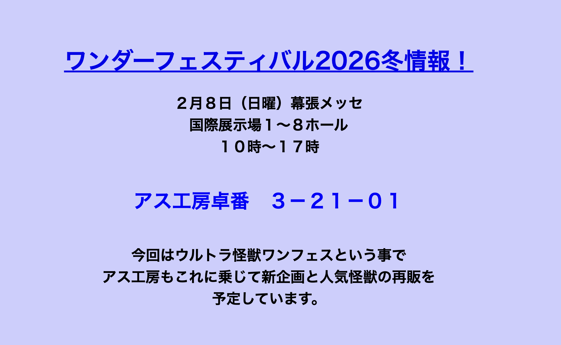 ❄【告知】ワンフェス2026冬 品書き