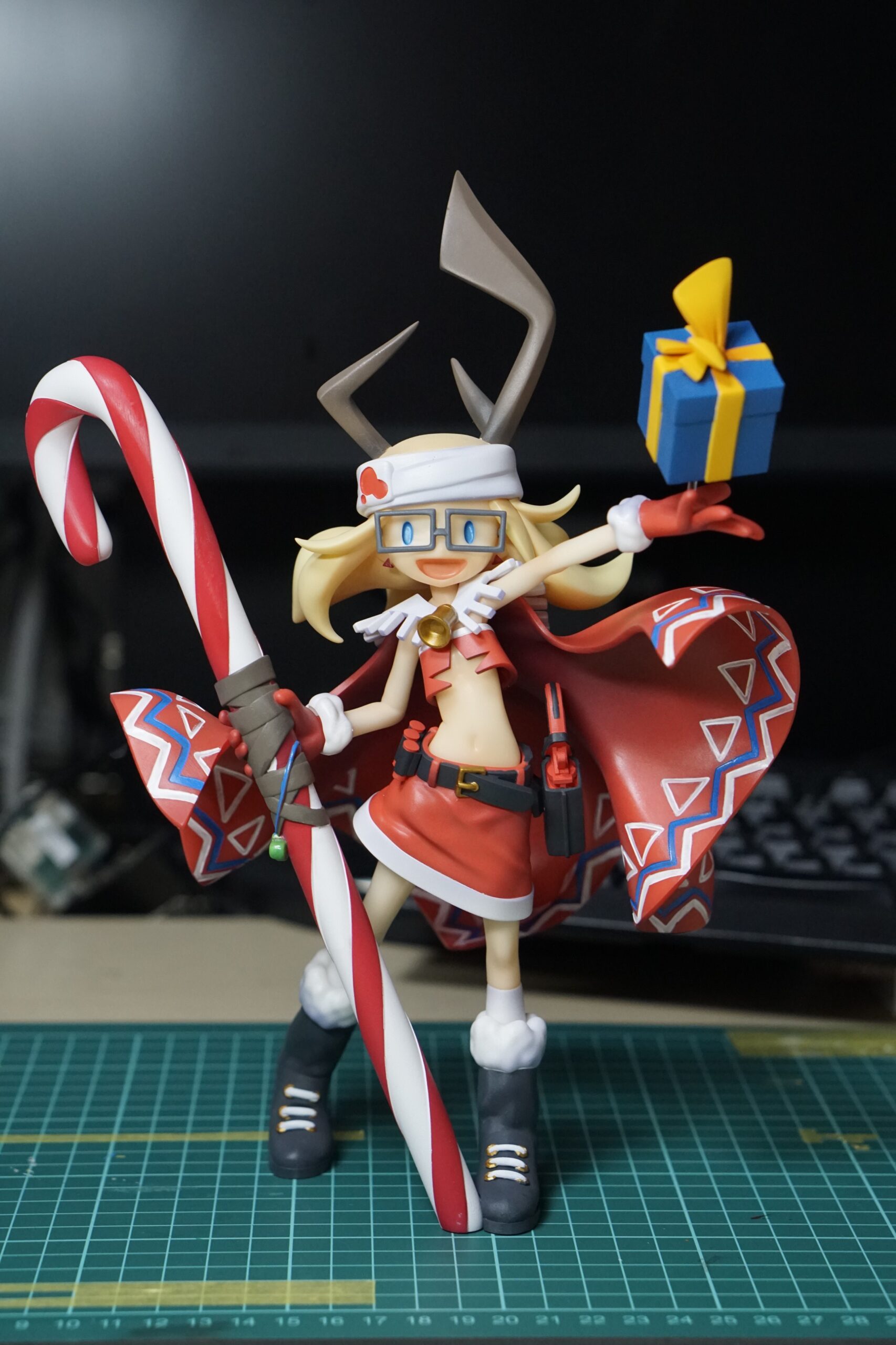 被っているのはナショナルの通称コロカセという小さいラジカセがモチーフです。今回は花や葉のようなものを身に着け、音楽が鳴っているということで髪の毛の先が音符の形になっています。彩色はほぼターナーアクリルガッシュで、最近購入したカラーパールのホワイトを葉脈のような模様に塗ってみました。