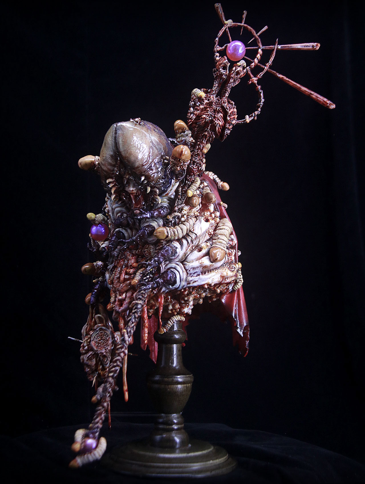 【作品解説】友人との会話から着想を得たキャラクターで初期コンセプトは“死”と“腐敗”。造形はベースのウジ虫と人間的な要素それぞれの構造的特徴を融合させている。
