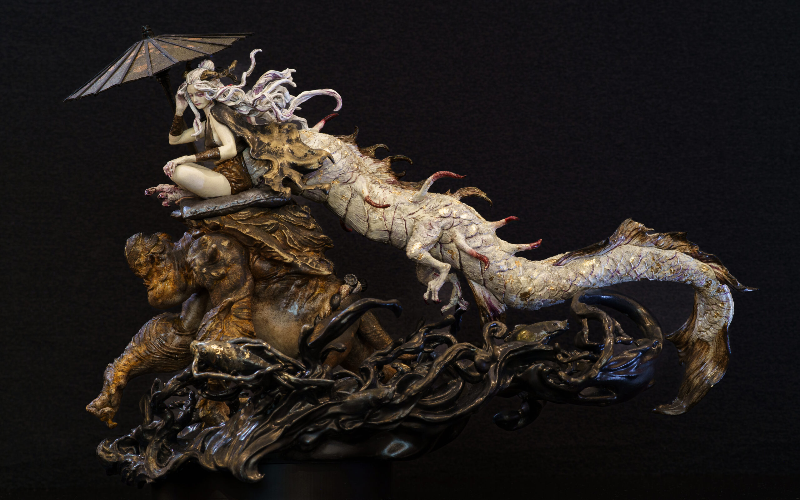 流れの早い河を渡る、亀のような生き物に乗った龍の少女の像。最近の自分の身の回りにはポジティブなものネガティブなもの含め大きな変化がいくつもありました。流れに身を任せたり逆らったりしましたがそんな生き方を川になぞらえました。