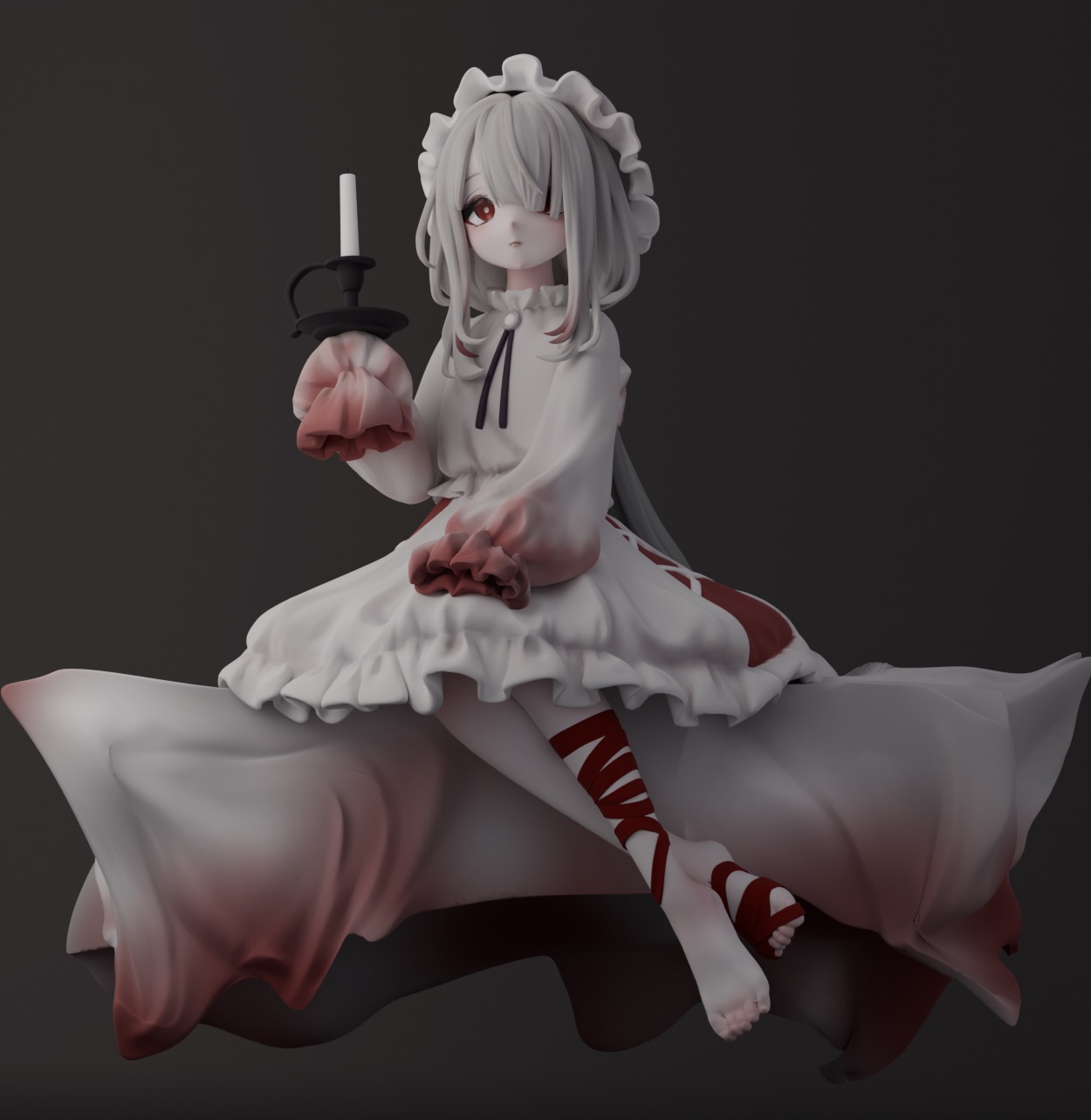 【作品解説】ZBrushにて制作いたしました。制作時間は約20時間になります。カンデラとはロウソクを意味する言葉で、光の単位でもあります。ふと筆を走らせてできたイラストを元に思うまま造形しました。