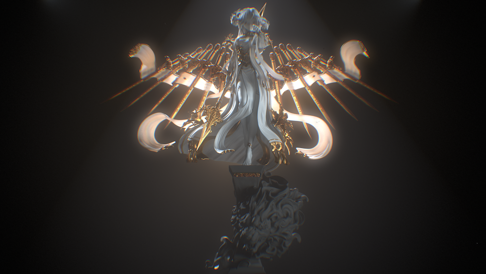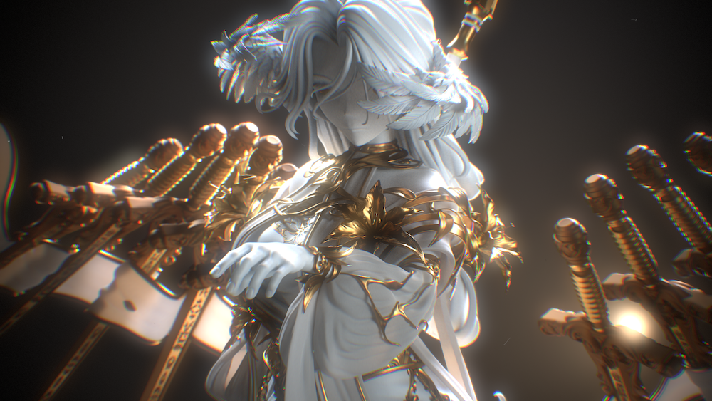 ヨシ:視線誘導があんまりないのでズームしないと、全部同じ反射に見えてしまうのがもったいない気はします。絵画的な雰囲気の作品なので、ライティングも絵画っぽいバロック様式みたいな暗い背景にライトをポイントしぼって焚いてドラマチックにするといいのかなって。好みもあるんですけど、絵画的な感じだと、そういうドラマチックな演出がより合うんじゃないかなと個人的に思います。