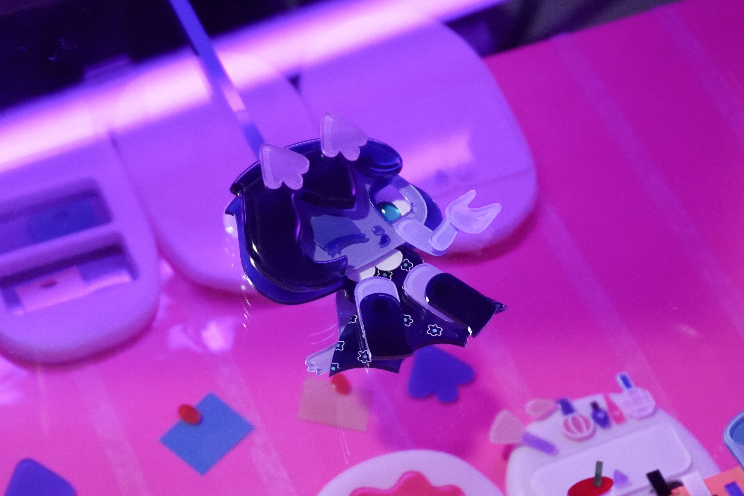見里:羊毛フェルトと違って境界線がシャープなところです。羊毛フェルトの扱いには慣れていますが、それだけを使うには表現の限界があります。動物系のキャラには合っていても、人間などのキャラクターでは「なぜそこで羊毛フェルトを使うのか」という、その作品に対する素材の必然性が見失われてしまう。それを探っていて再発見したのがプラバンでした。
