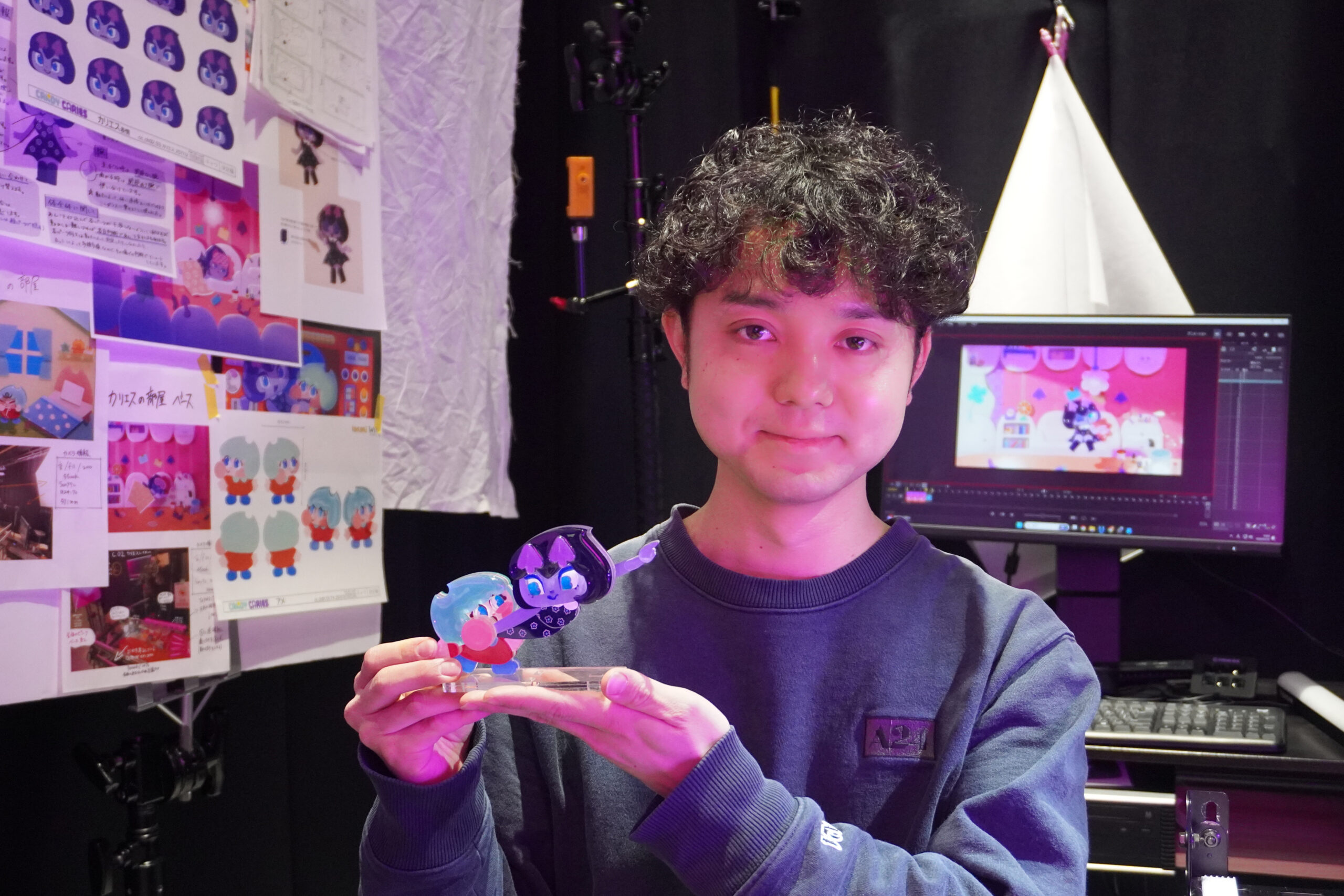 見里朝希(以下、見里):最初に使ったのは、大学院の1年生の時の『Candy.zip』という作品です。プラバンの懐かしい感じを、あえてマルチプレーンで撮影してみようと制作しました。その後、個展でWIT STUDIOさんにお声をかけていただき、大学院を卒業後に『Candy.zip』をベースにしたプラバン素材のコンテンツを作ることになったんです。そこで生まれたのが最初の『キャンディーカリエス』のパイロットムービーでした。そこから何年か重ねて、現在のシリーズ物へと発展したんです。