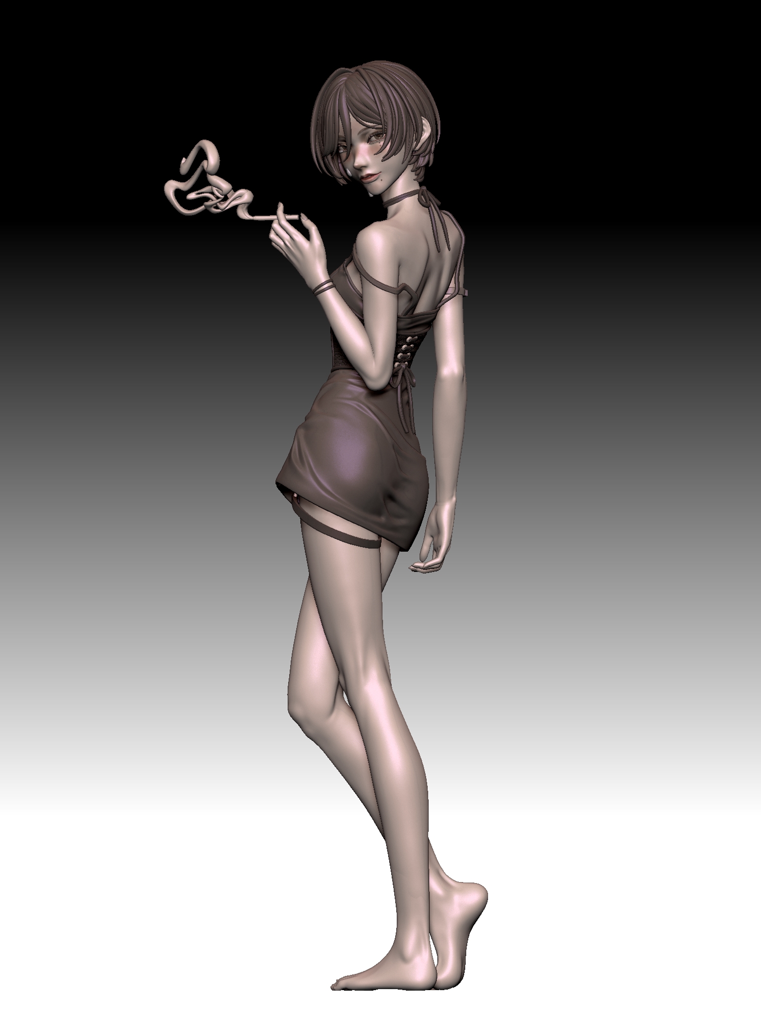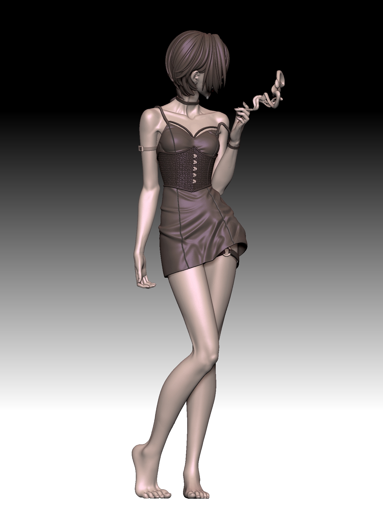 顔や髪の造形とそのキャラの魅せたい身体の部位。やはりフィギュアは立体なので、イラストを元に立体にする場合でもどこか説得力的なものが欲しいと思っていて、部分的(身体や服や髪)に作り込みを入れて、そこにいる感じを出せたらと最近は考えています。