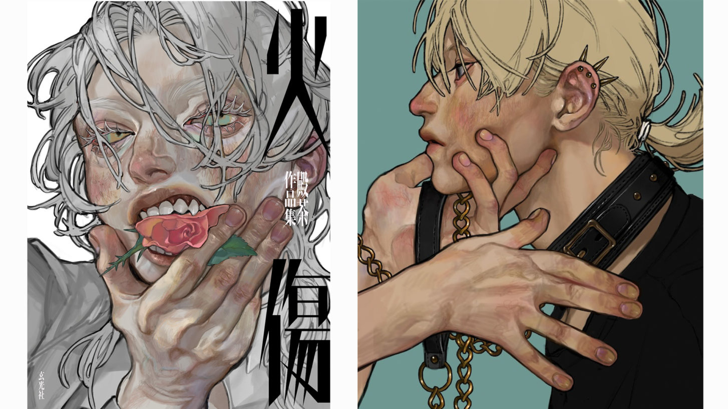 「火傷 殿茶作品集」が4月28日(月)に発売決定!現在、Amazonにて予約受付中です。画集のために描き下ろされた11点に加え、2020年以降の120点以上を一挙掲載。作画テクニックやインタビューなど大ボリュームの1冊となっています。