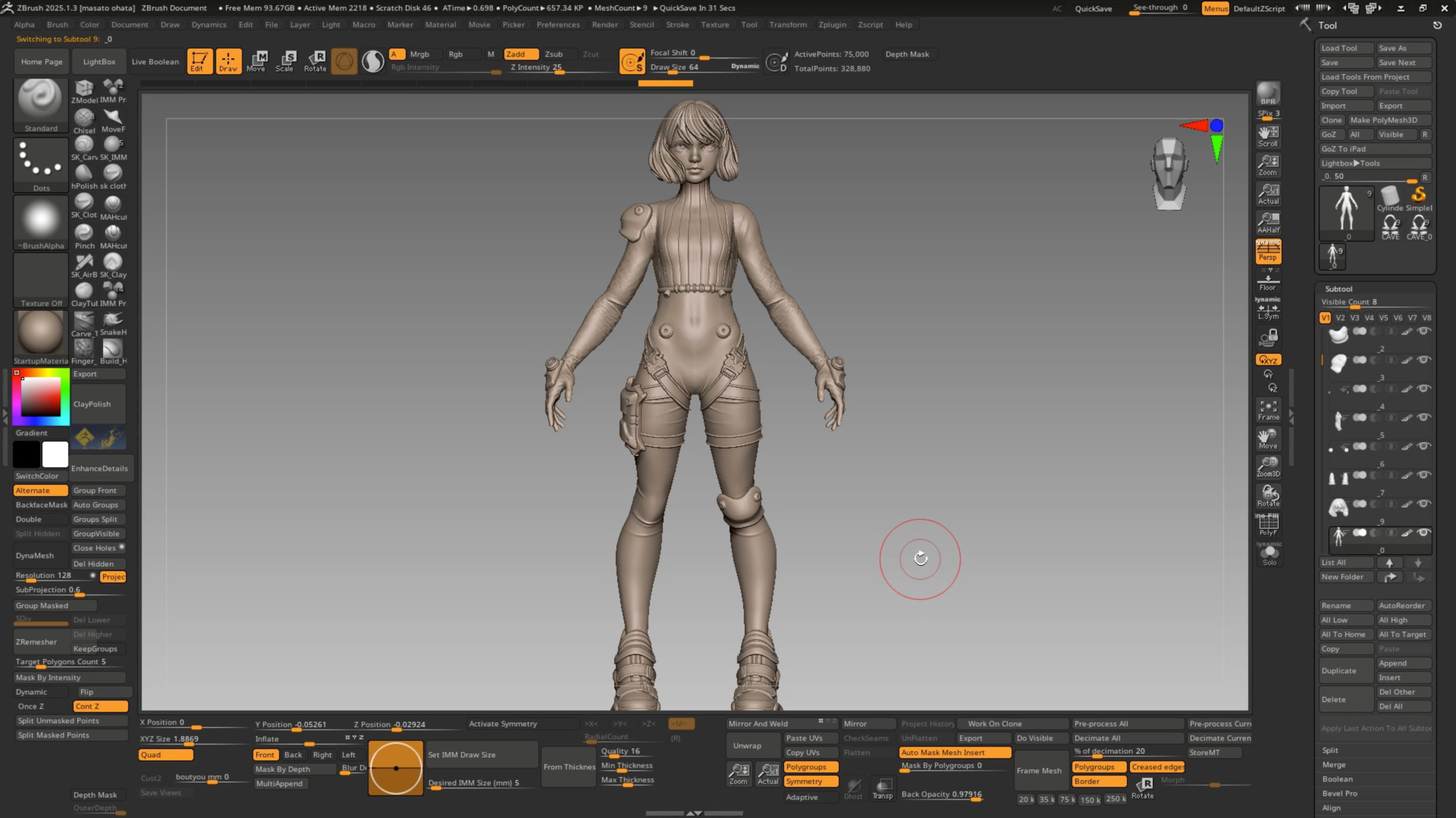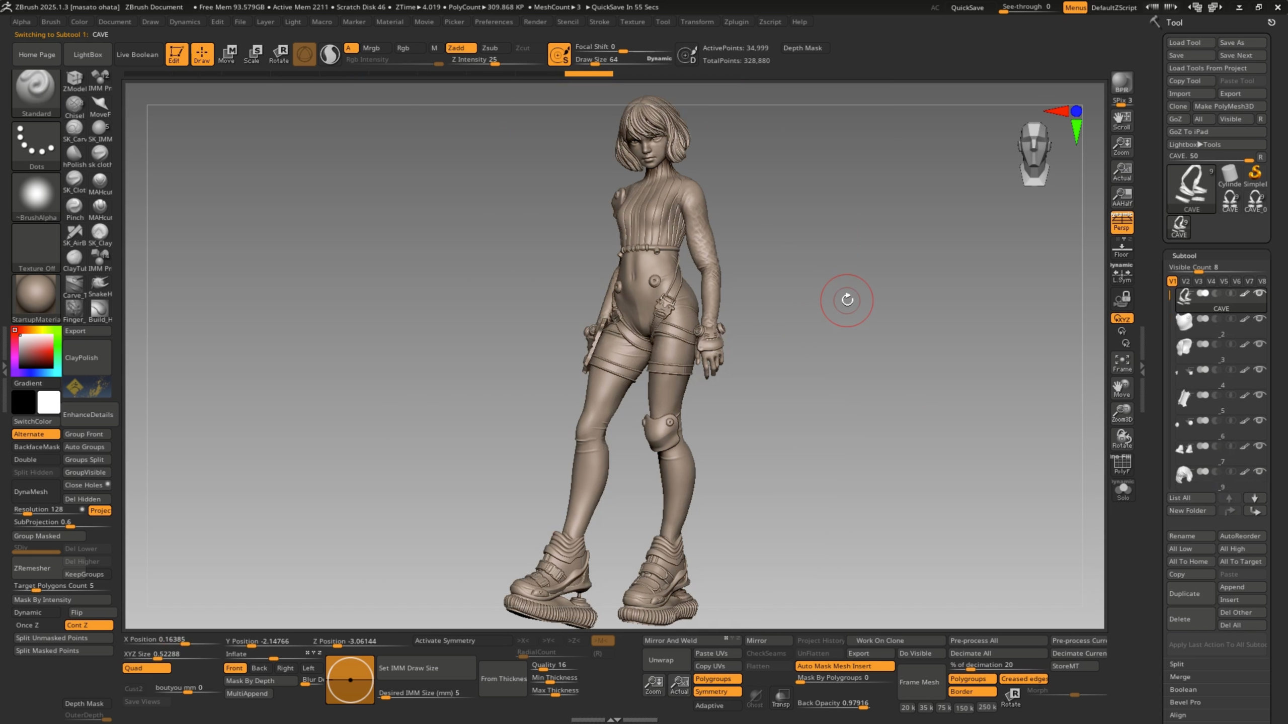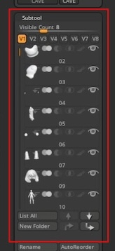 1.「In front of the cave」のモデルを用意しました。TポーズもしくはAポーズでこのように左右非対称になるようにサブツールをいくつか分けて用意しています。