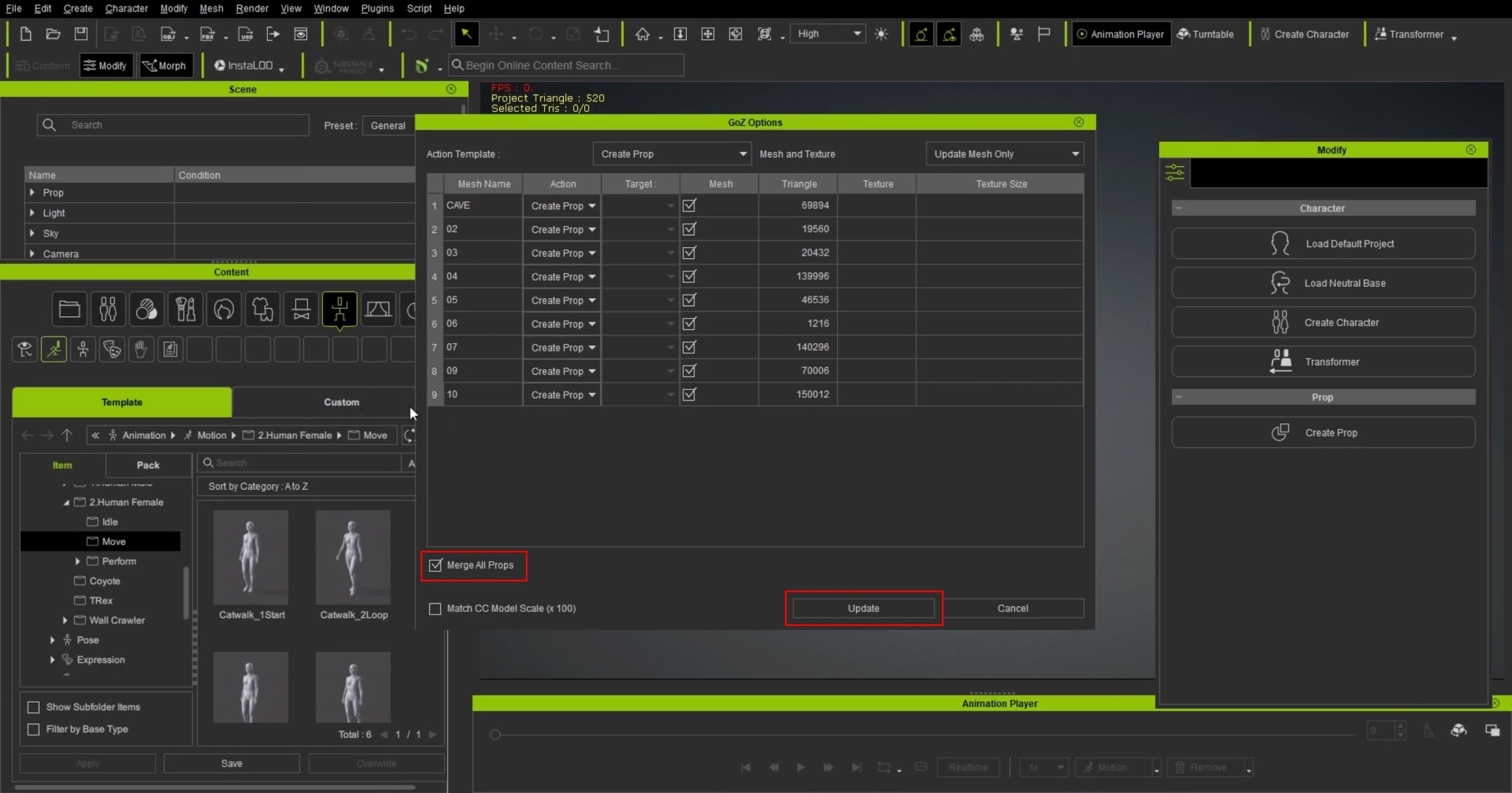 4.CC4を開くとこのように表示されます。Merge All Propsにチェックが入っていることを確認し、Updateを