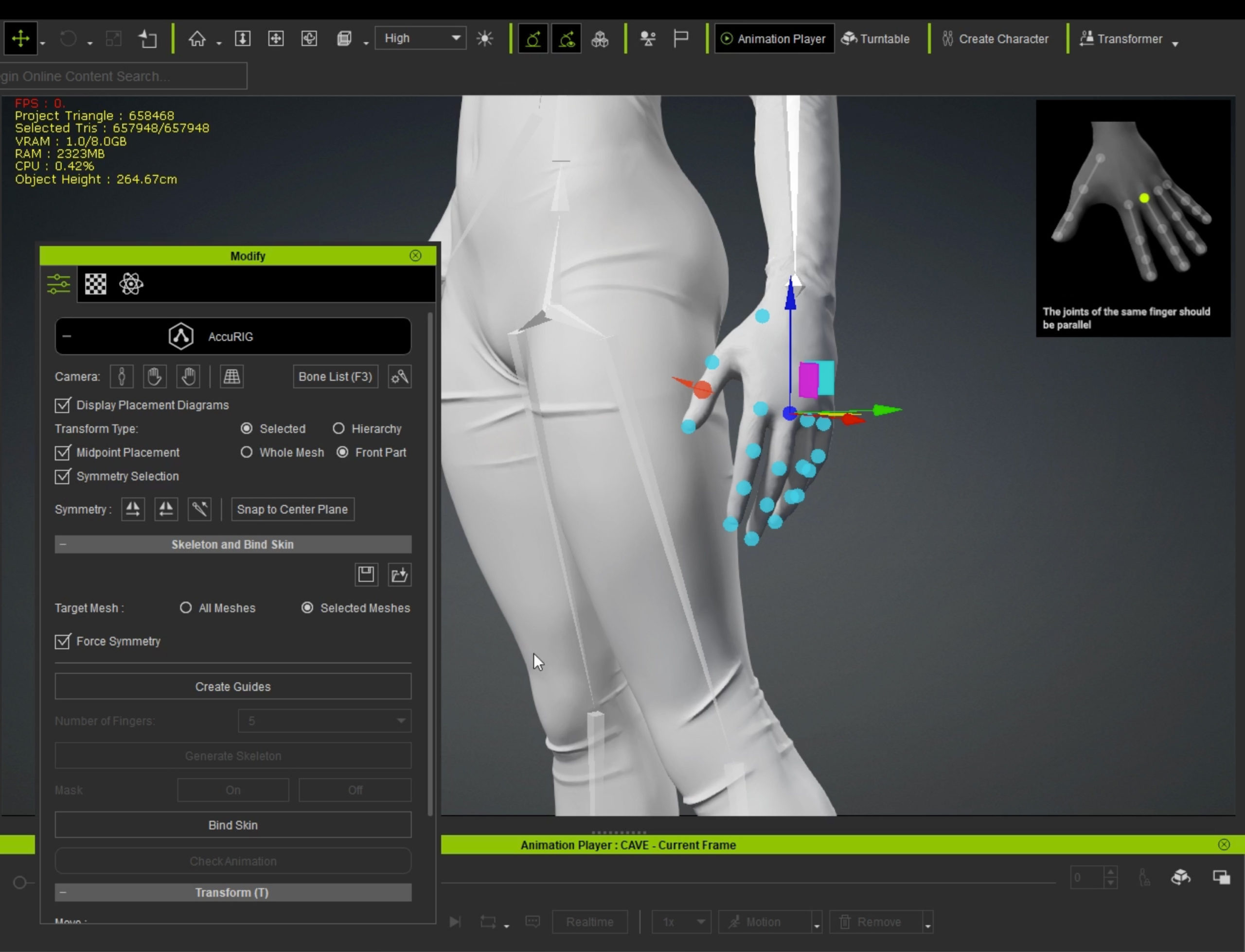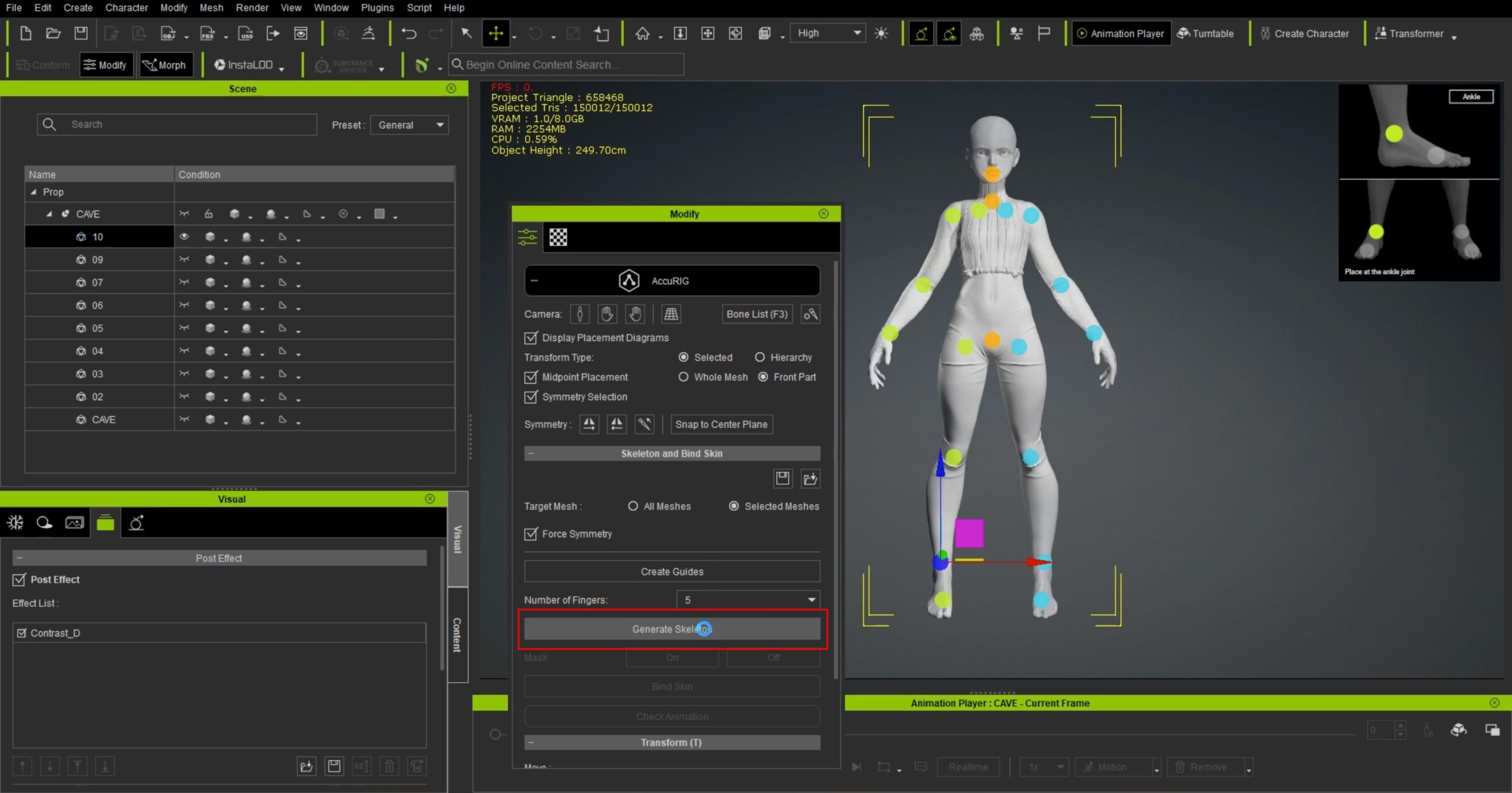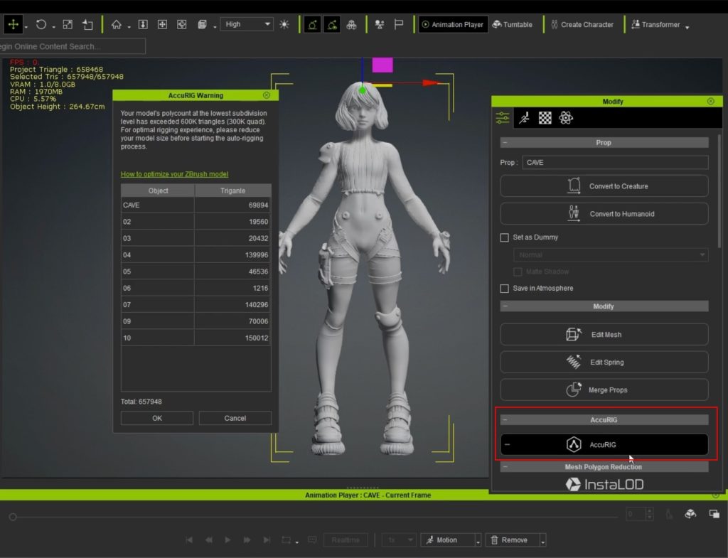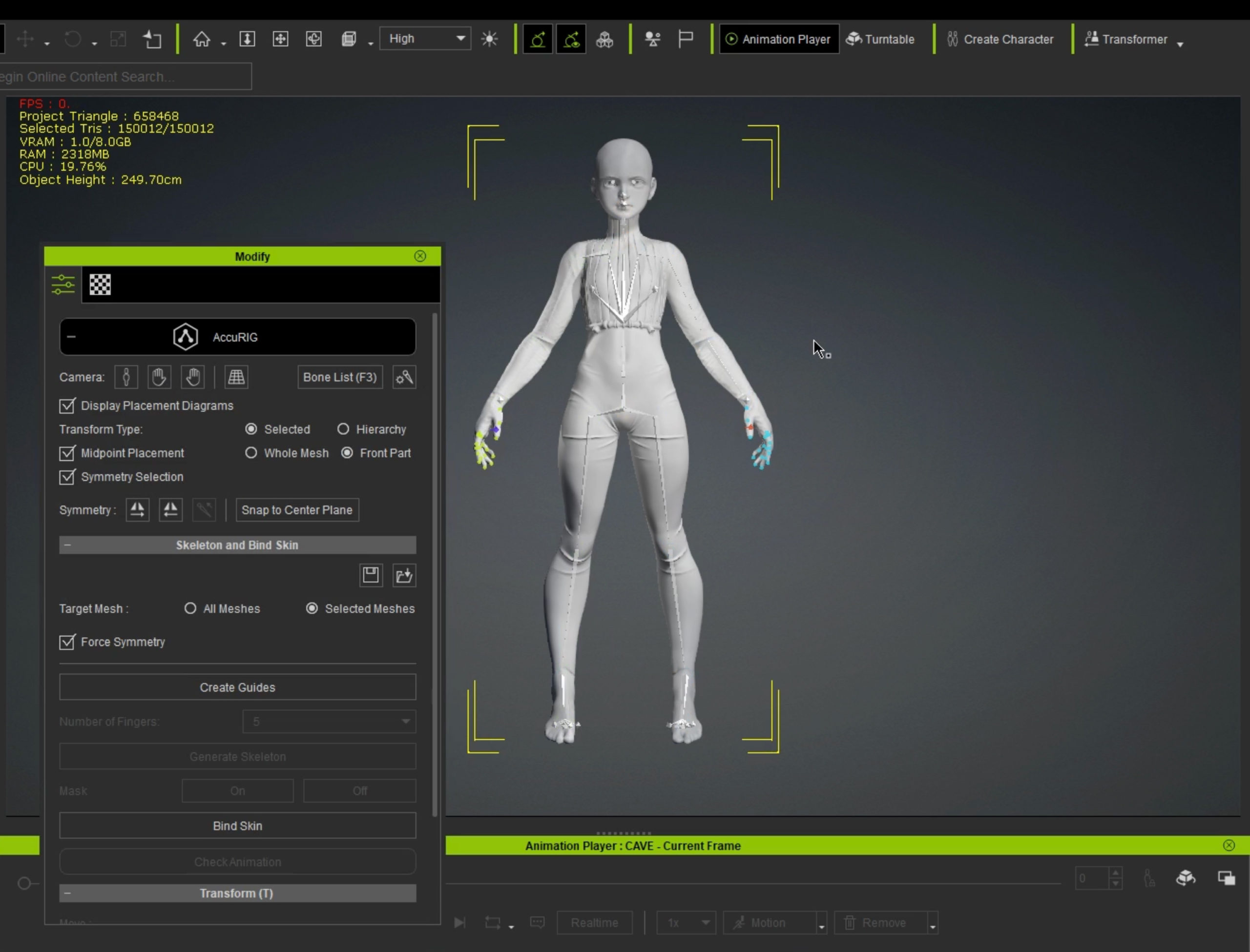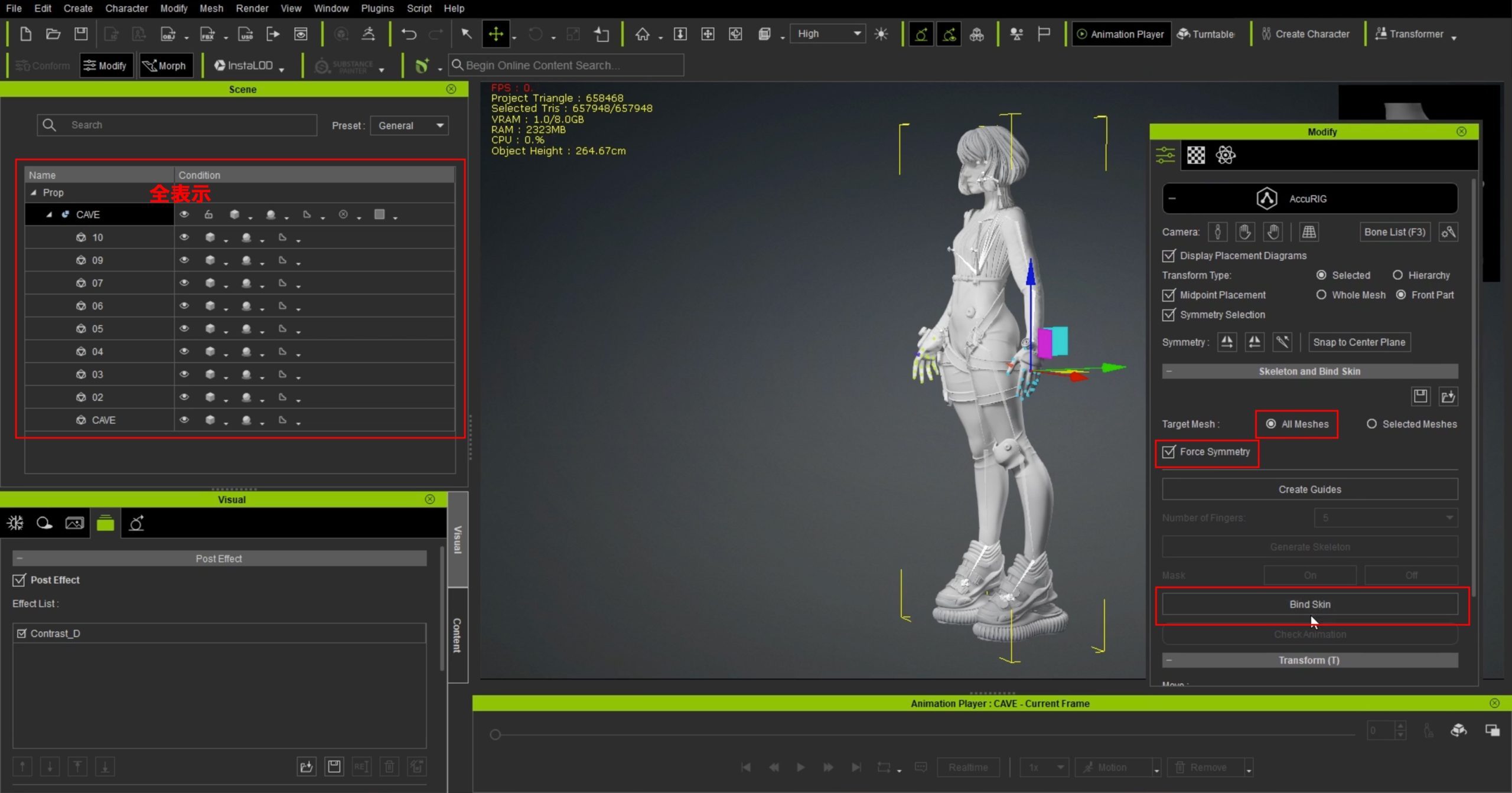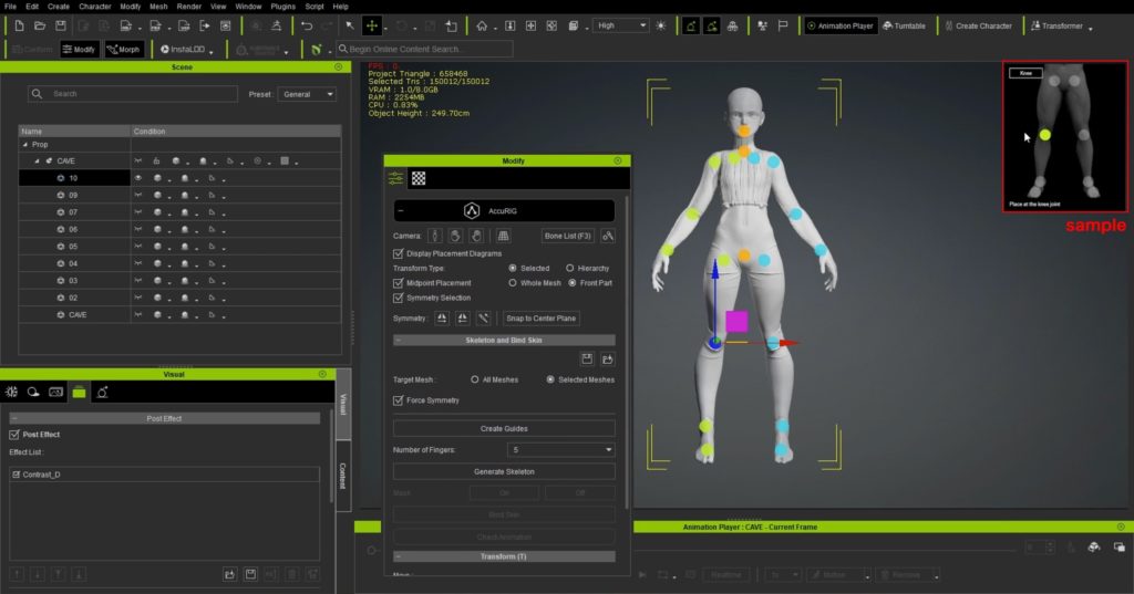 8.リグをつけていきます。AccuRIGで簡単にボーンをつけるこ