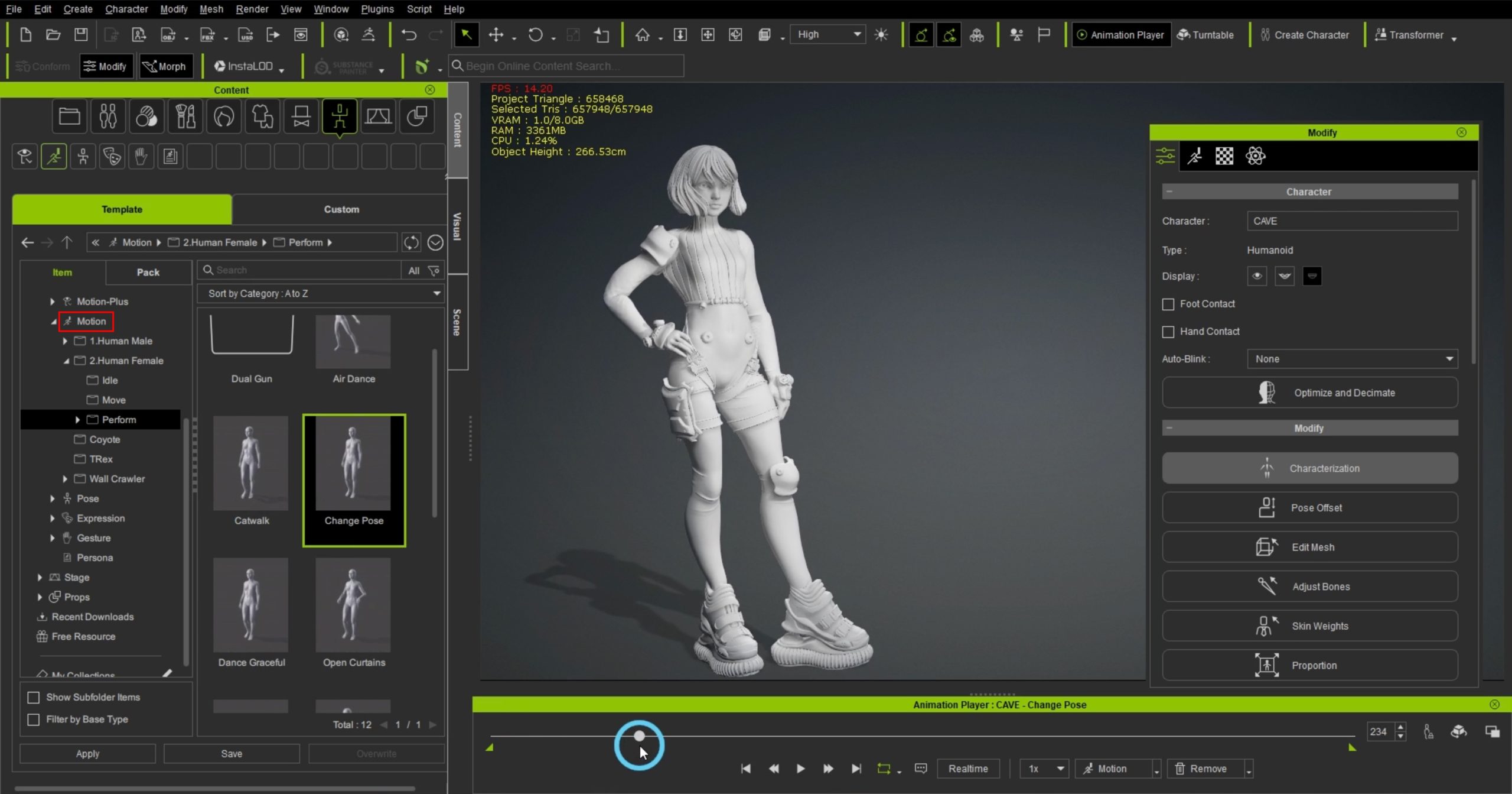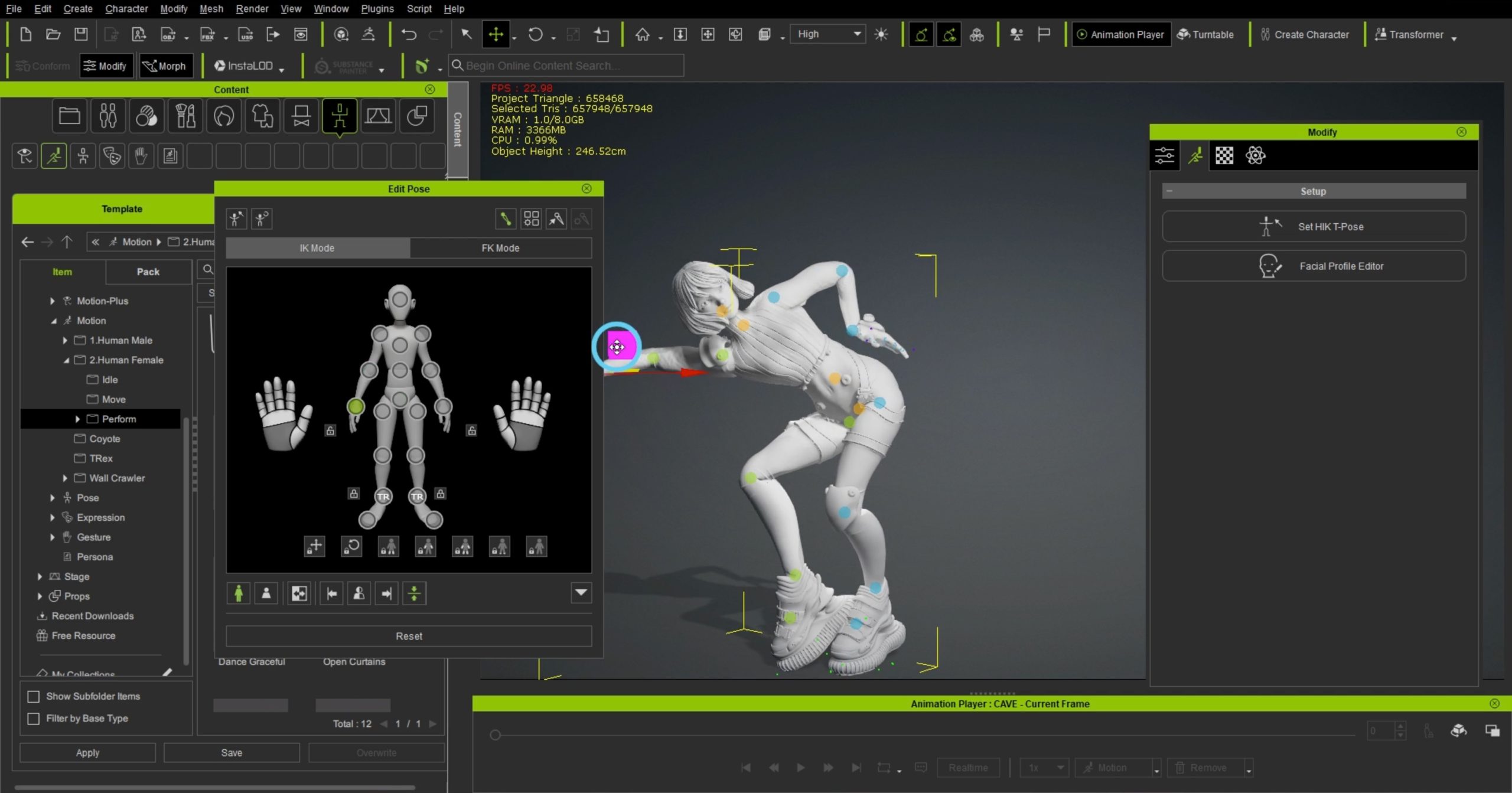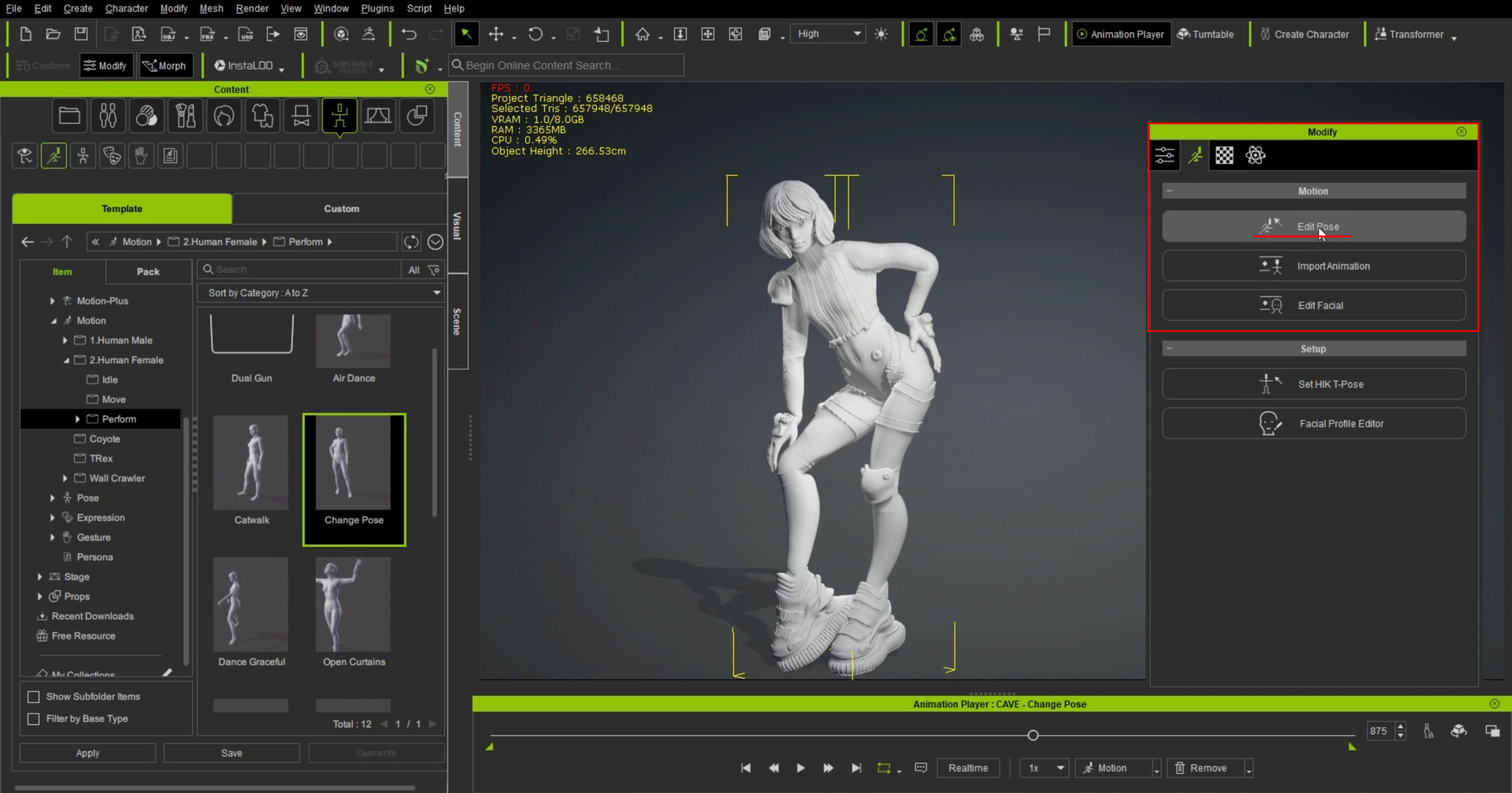 16.ポーズを修正したい場合は、ModifyからEdit Poseを選択すると手動で調整することができます。