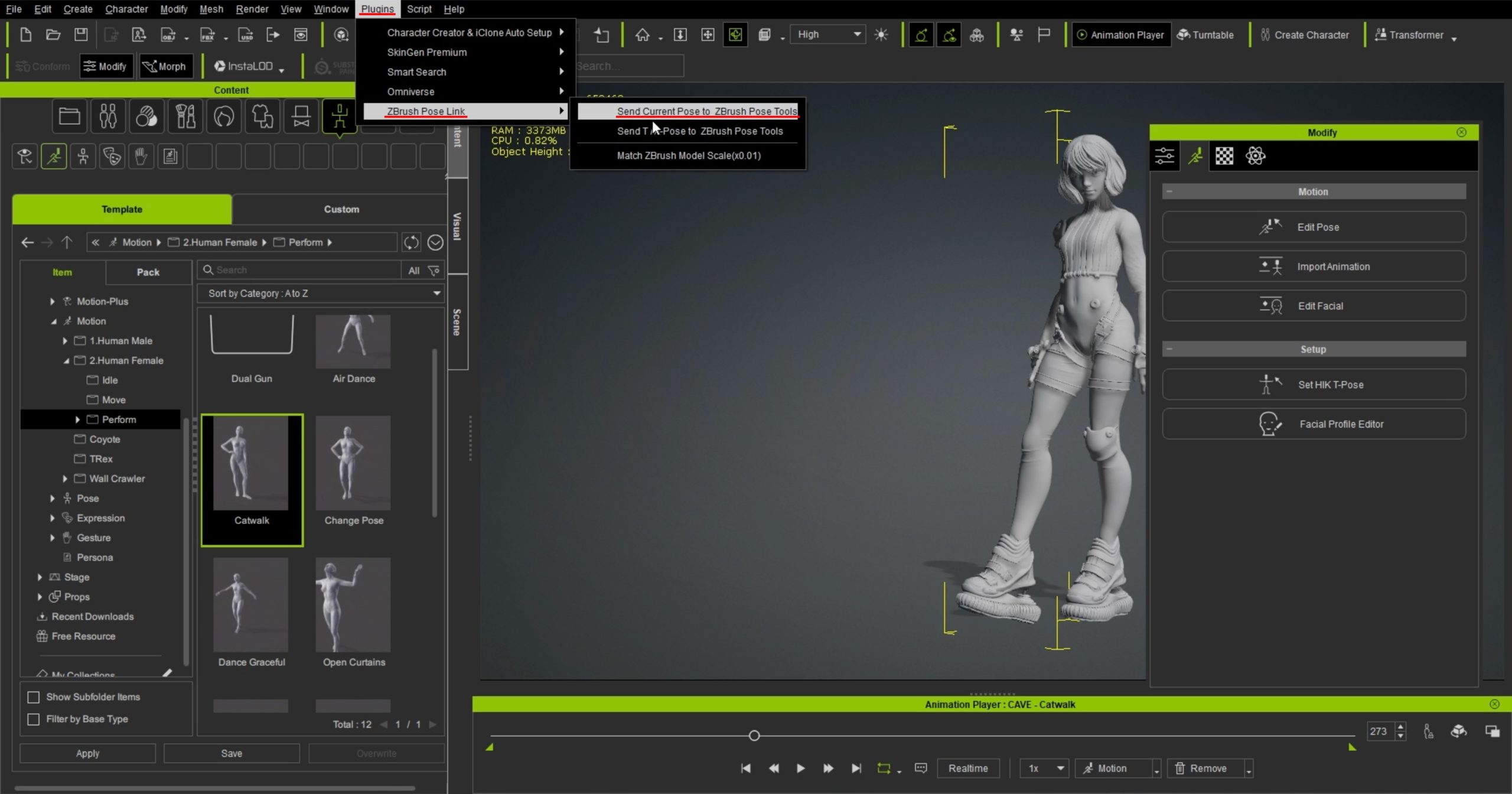 19.Send Current Pose to ZBrush Toolsを選択し、ZBrushにポーズが移動されました。