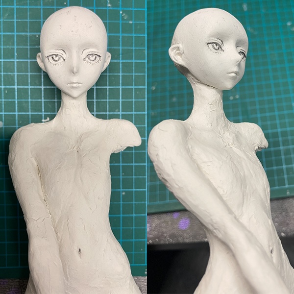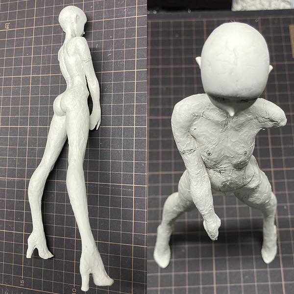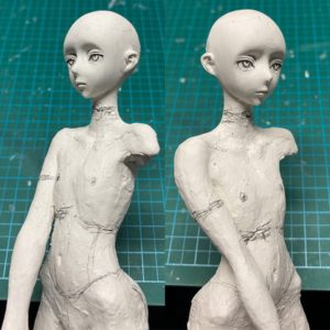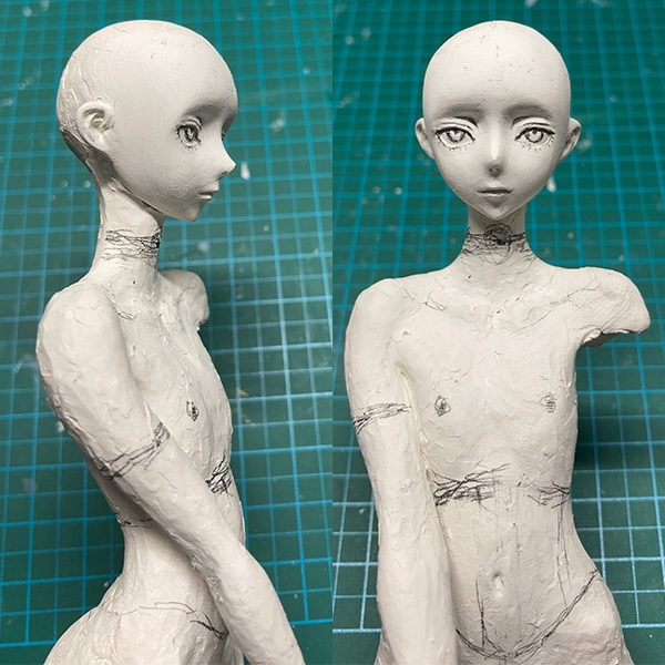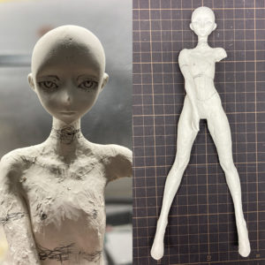 石長櫻子/植物少女園氏の「深淵の花嫁」粘土造形テクニック。今回は頭部の彫刻とボディの造形について解説します。