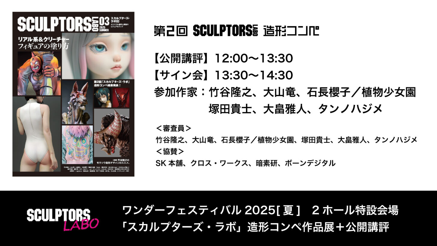 2ホール特設会場「スカルプターズ・ラボ造形コンペ」ワンフェス2025[夏]出展決定!受賞作品展示・公開講評・書籍販売も実施