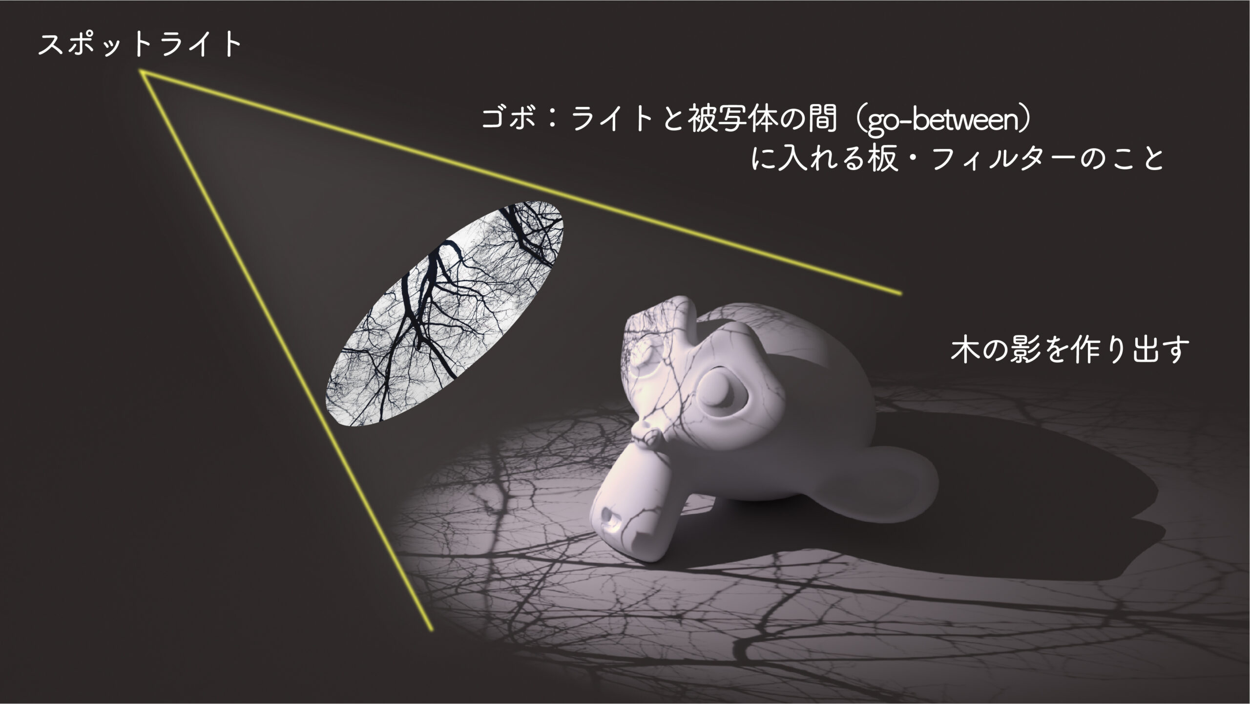 スポットライトから、この白黒画像のシルエットの形をした光が、オブジェクトに向かって投影されることになります。