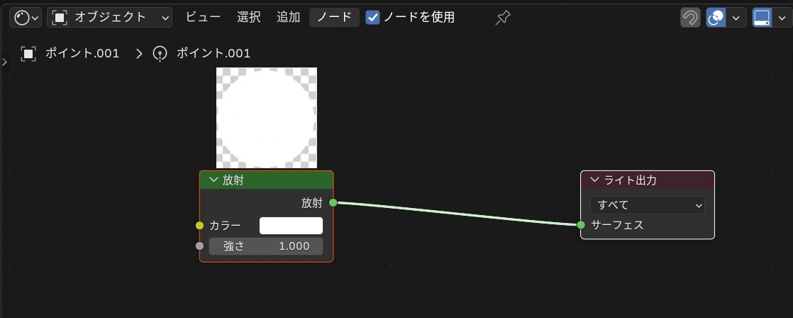 追加したいライトを選択した状態で、ノードを使用に✓を入れると、下の画像のようなノードが出てきます。ここから始めます。