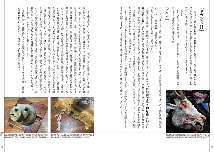 僕の父は、海の漁師と山に入って獣を獲る猟師を両方やっていました。なので日常的に、子供時代の僕の目の前でバンバン生き物が殺されるわけです。そういうことでタジタジしながら成長する(?)ひ弱な少年がアタフタするエッセイです。